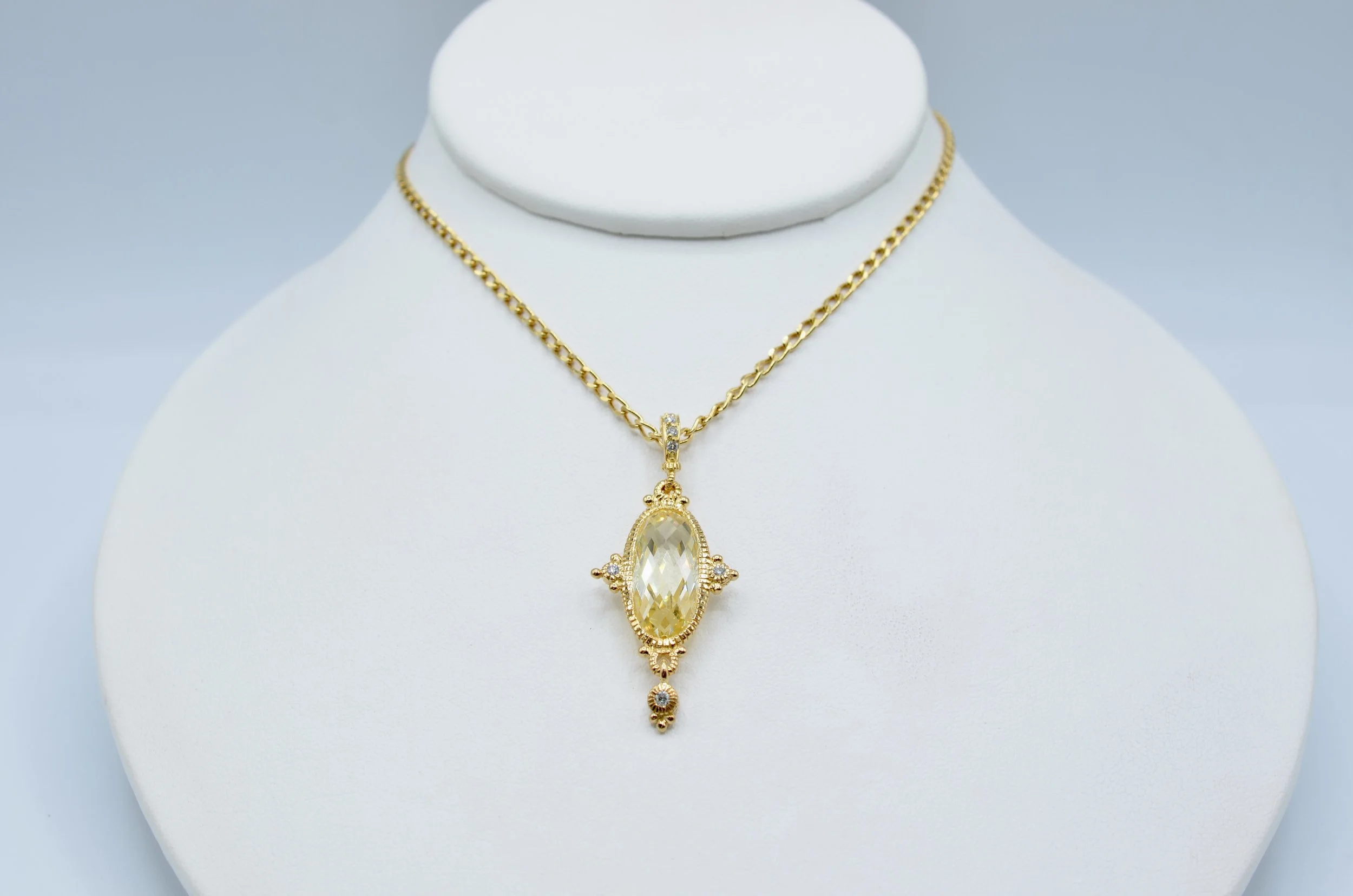 18k Gold, Diamond And Citrine Judith Ripka Pendant And Chain.~~13.7gr