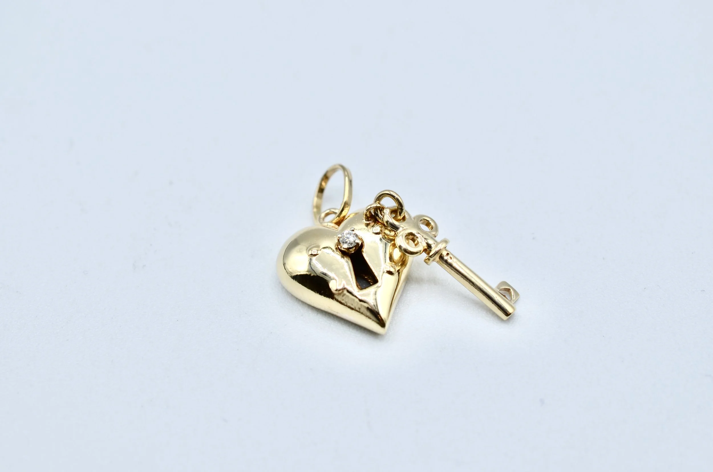 14k Vintage Gold And Diamond Heart And Key Charm/Pendant.~~2.9gr