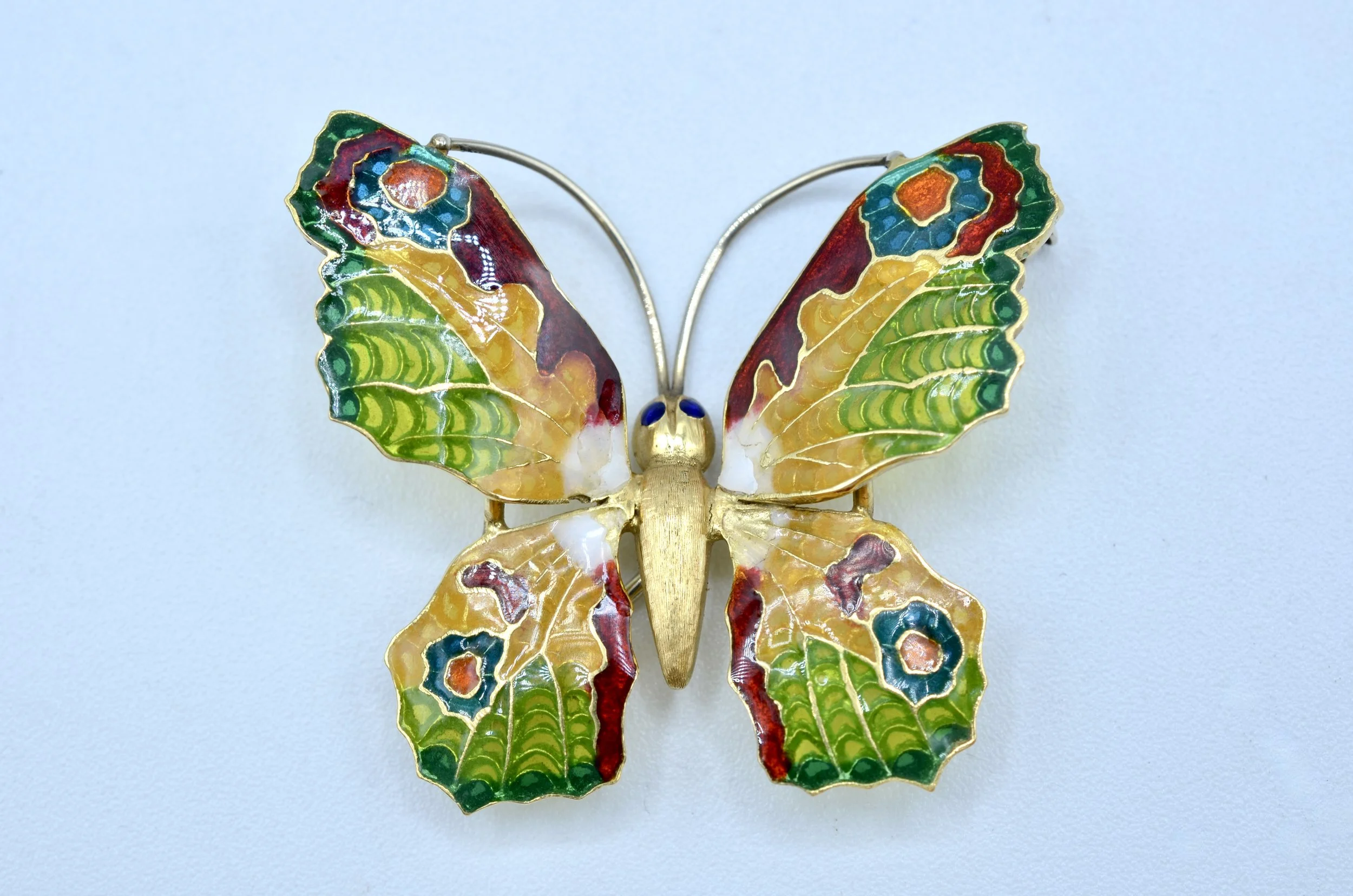18k Vintage Yellow Gold And Enamel Butterfly Brooch/Pin.~~ 12.6gr