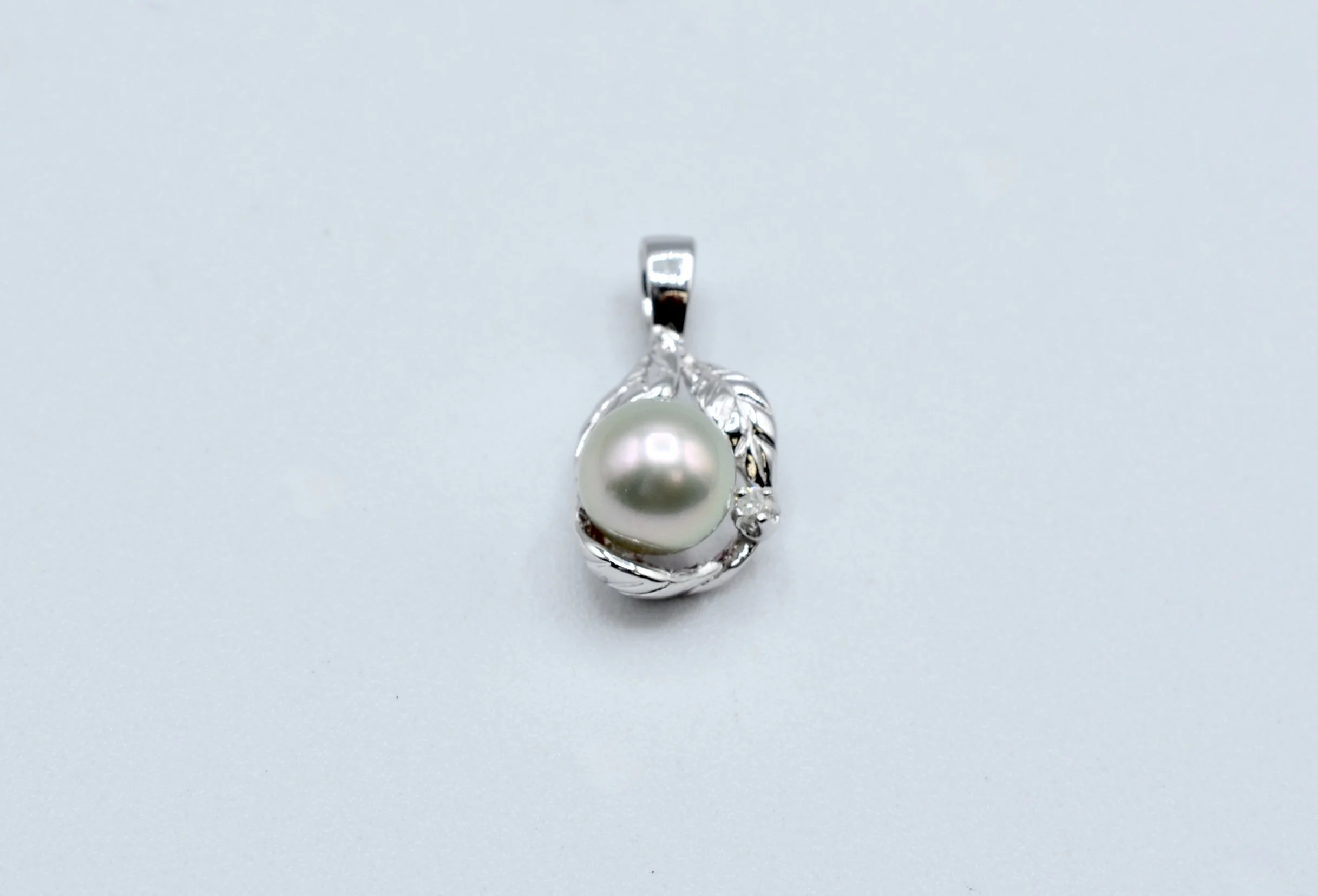 14k Vintage White Gold, Diamond And Pearl Pendant. 2.1gr