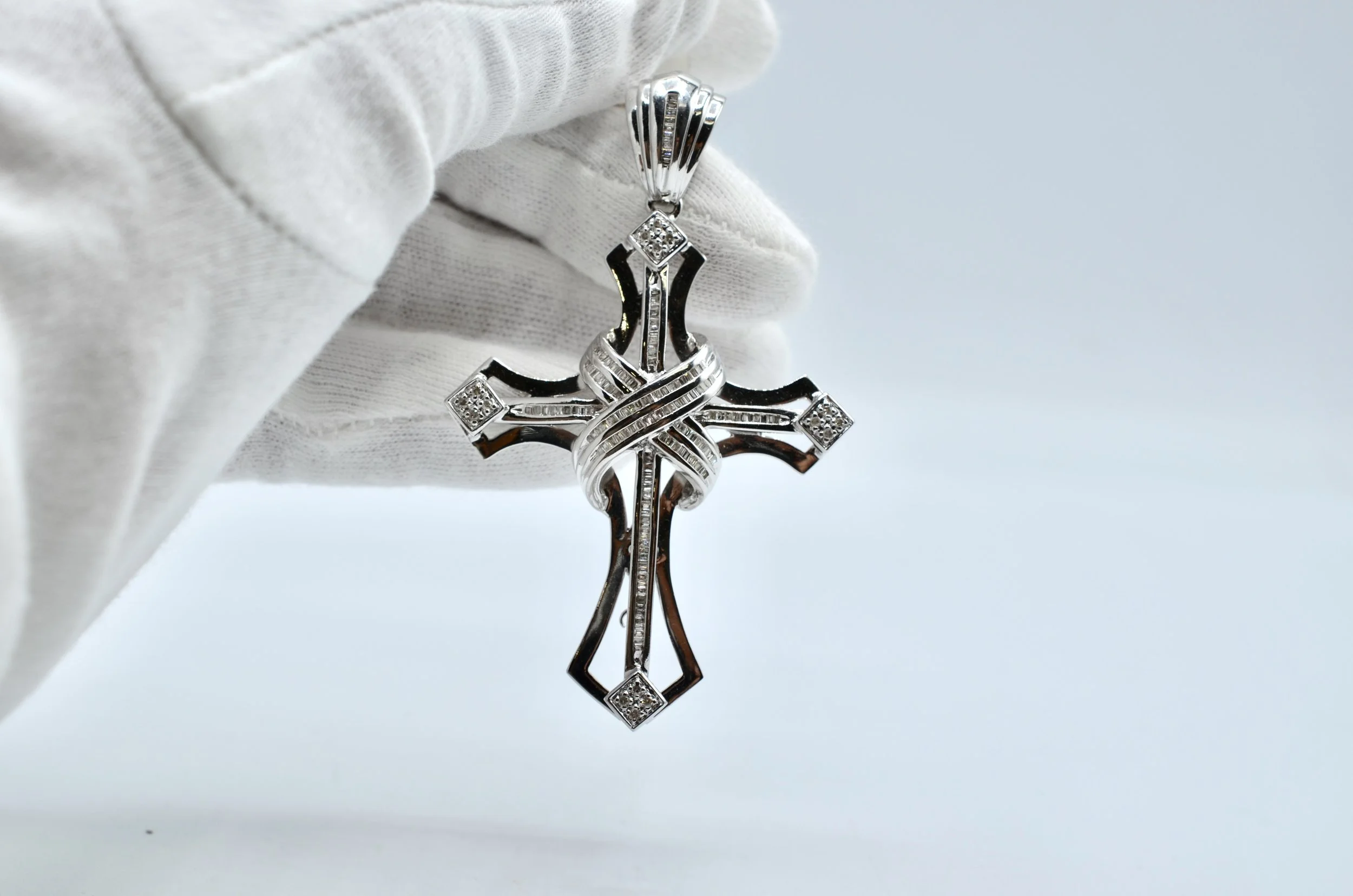 14k White Gold And Natural Diamond Cross Pendant. 13.8gr