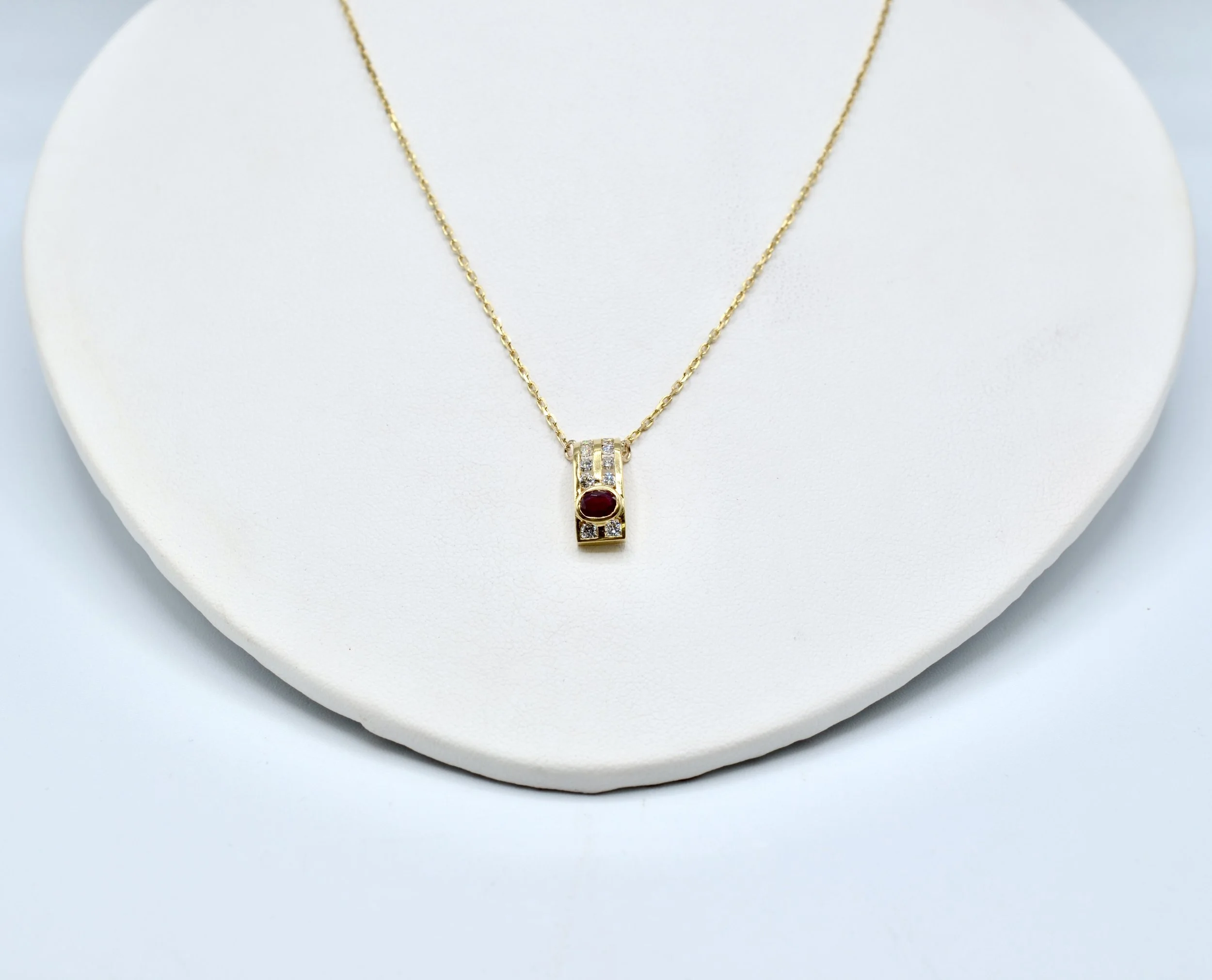 14k Vintage Gold, Natural Ruby And Diamond Pendant.~~ 4.2gr