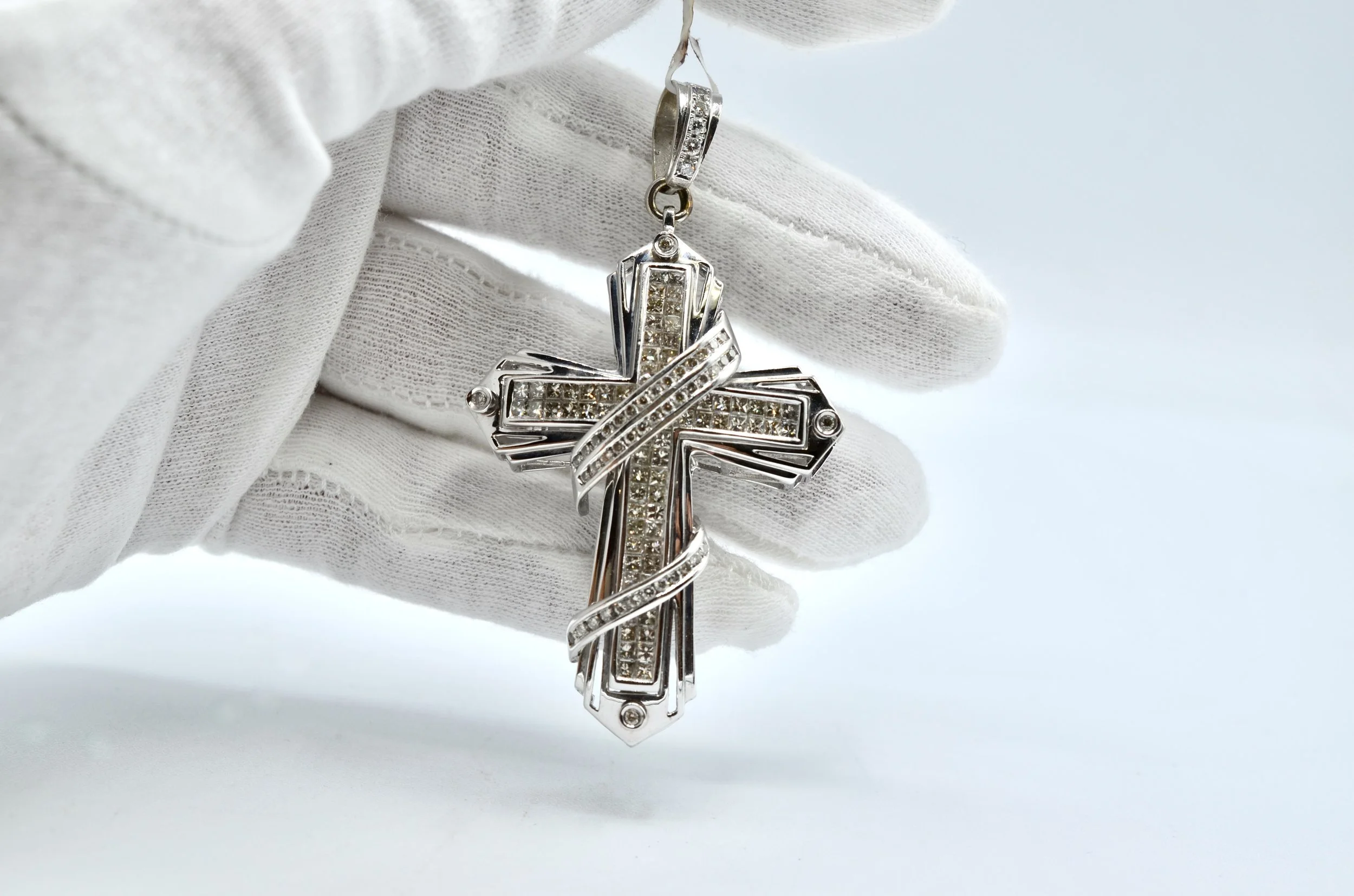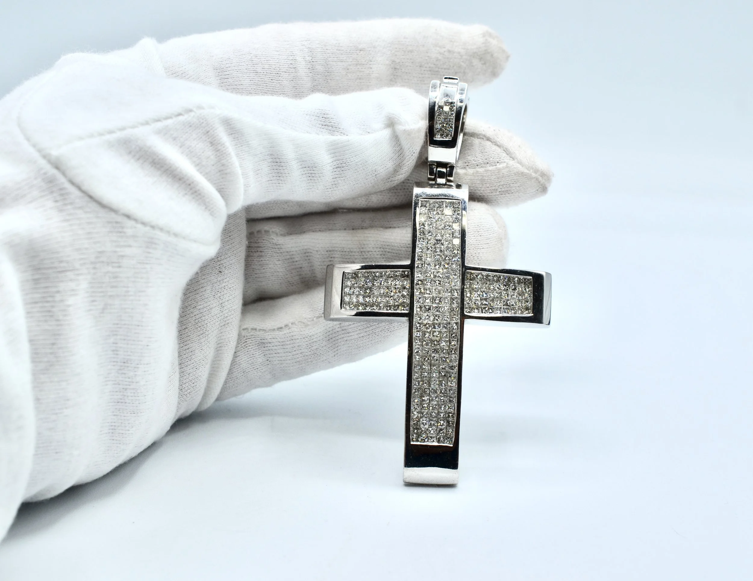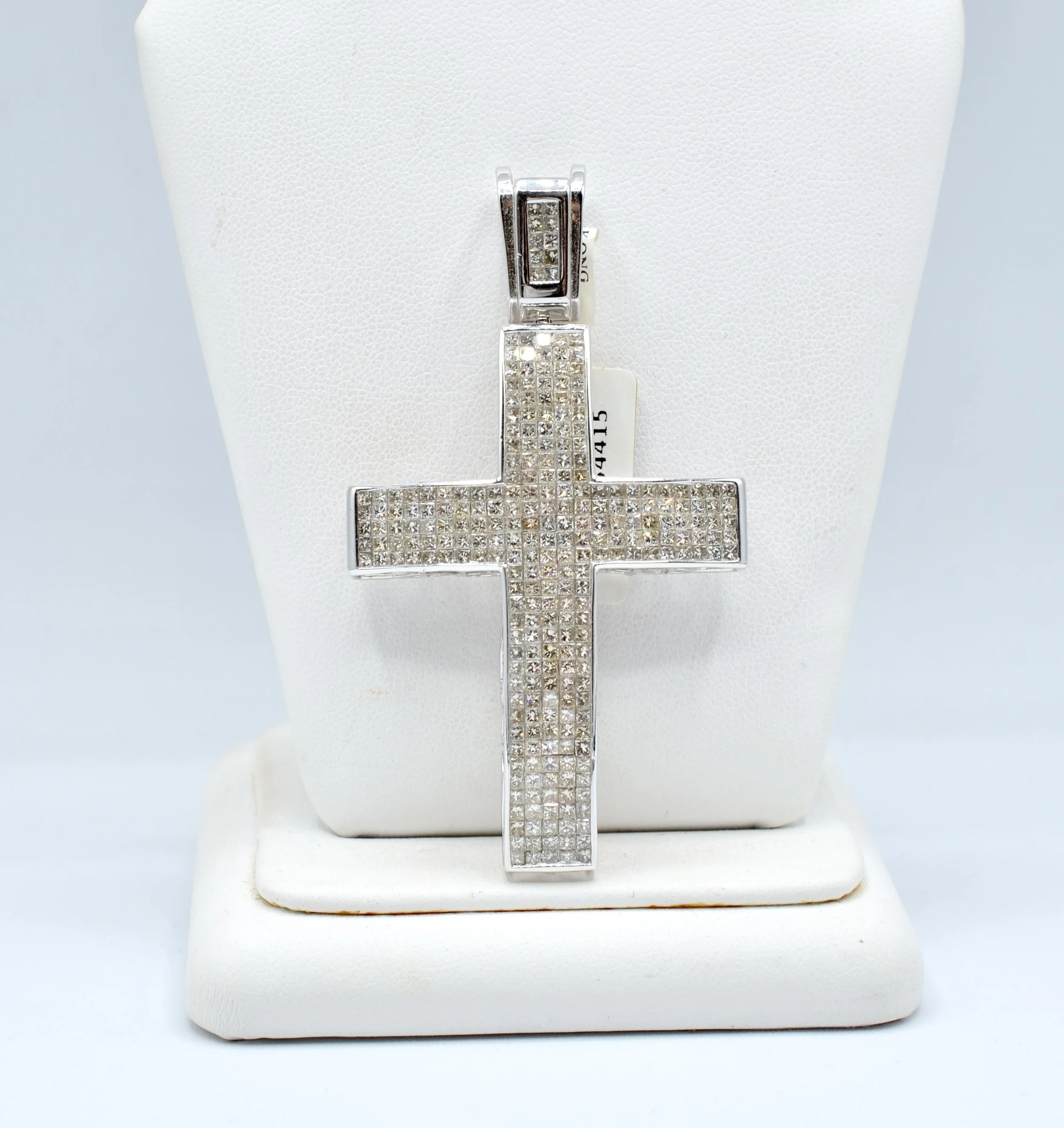 14k White Gold And Natural Diamond Invisible Set Cross Pendant. ~~49.1grams