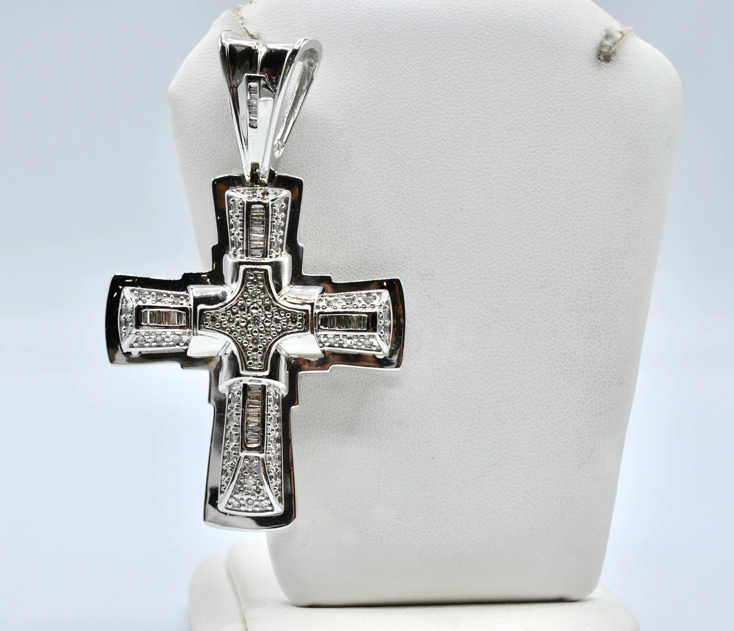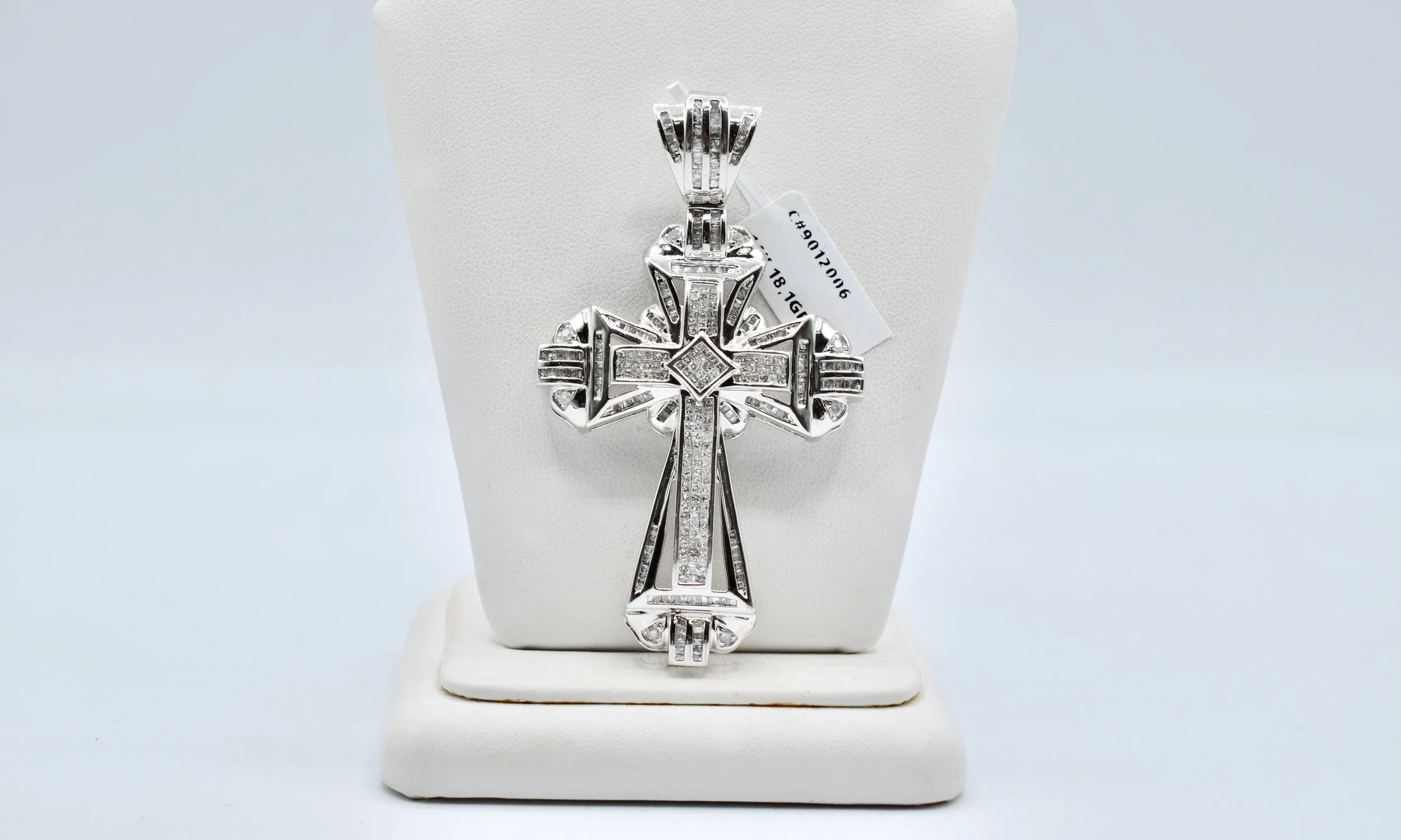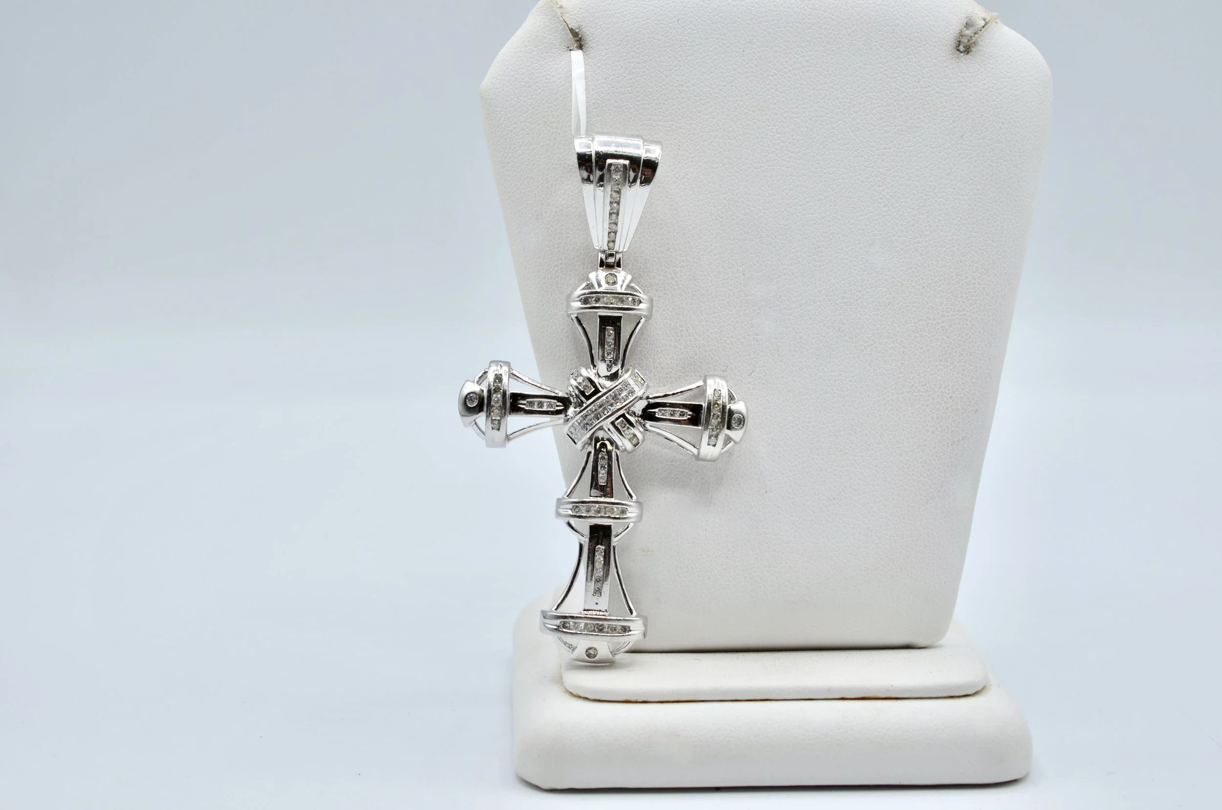 14k White Gold And Natural Diamond Invisible Set Cross Pendant. ~~49.1grams