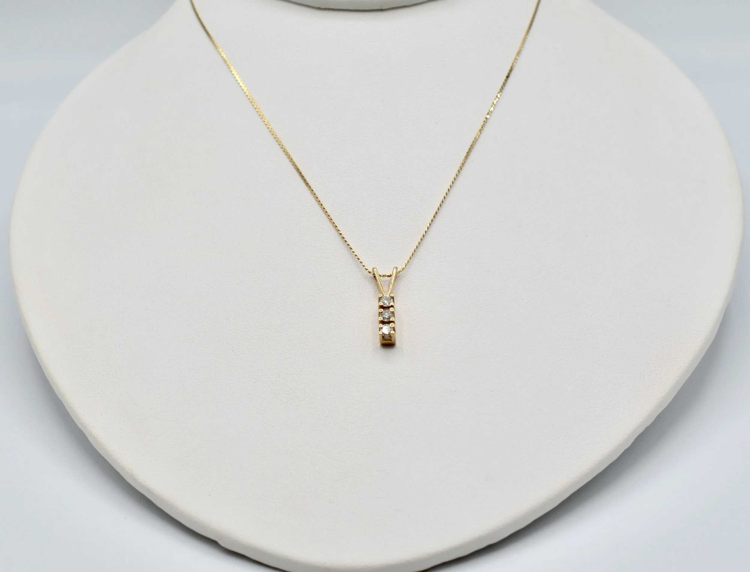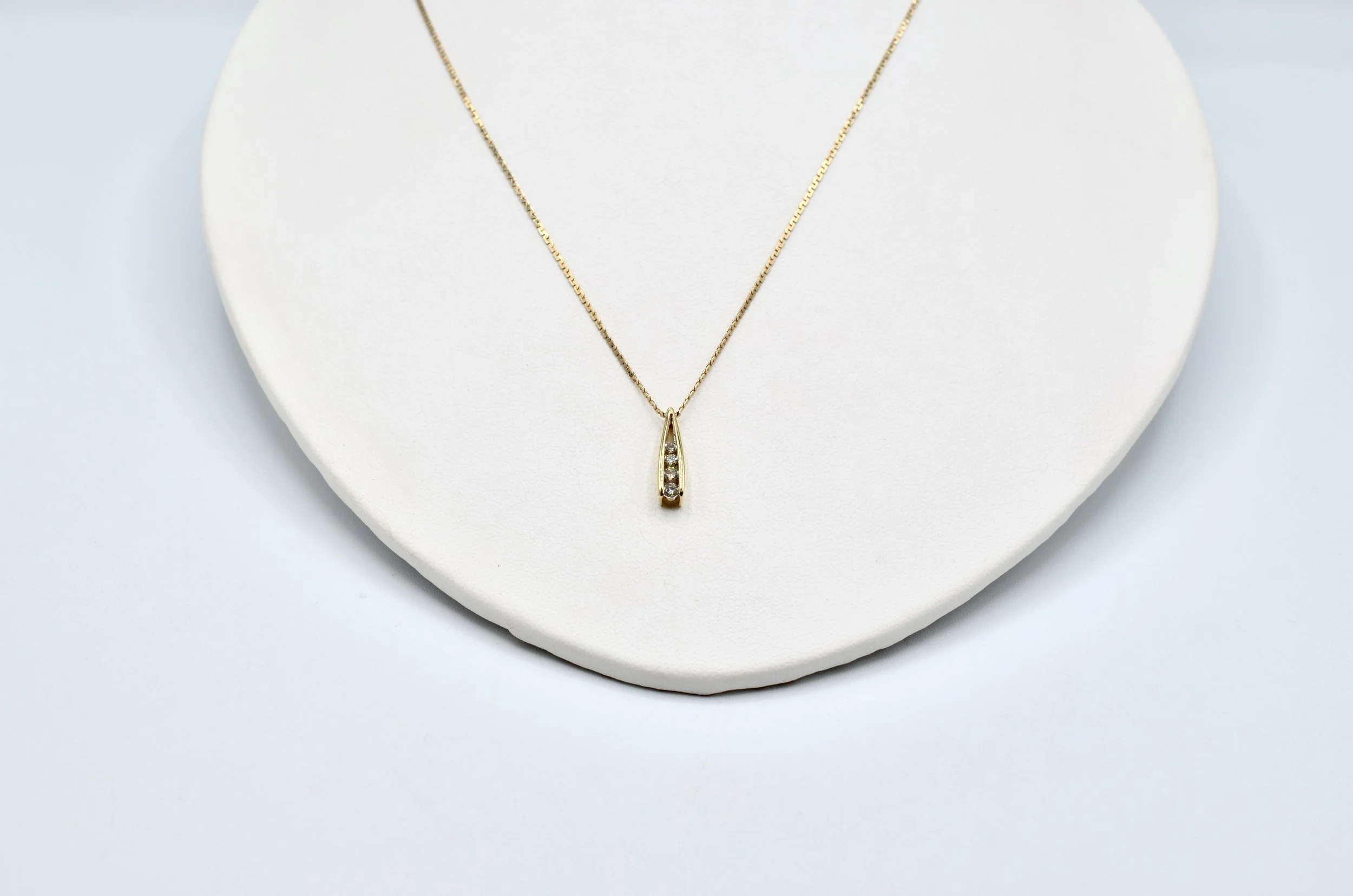 14k Vintage Gold And Three Natural Diamond Pendant And Chain.~~ 2.3gr