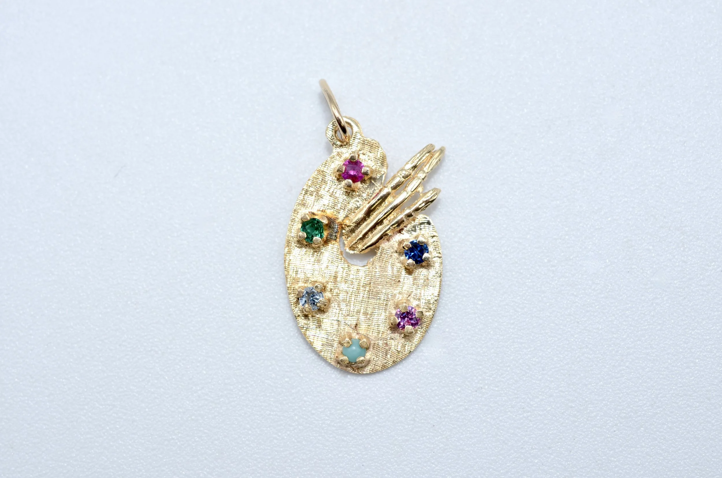 14k Gold Vintage Gold & Mixed Gemstone Artist's Palette Charm Pendant.~~2.3gr