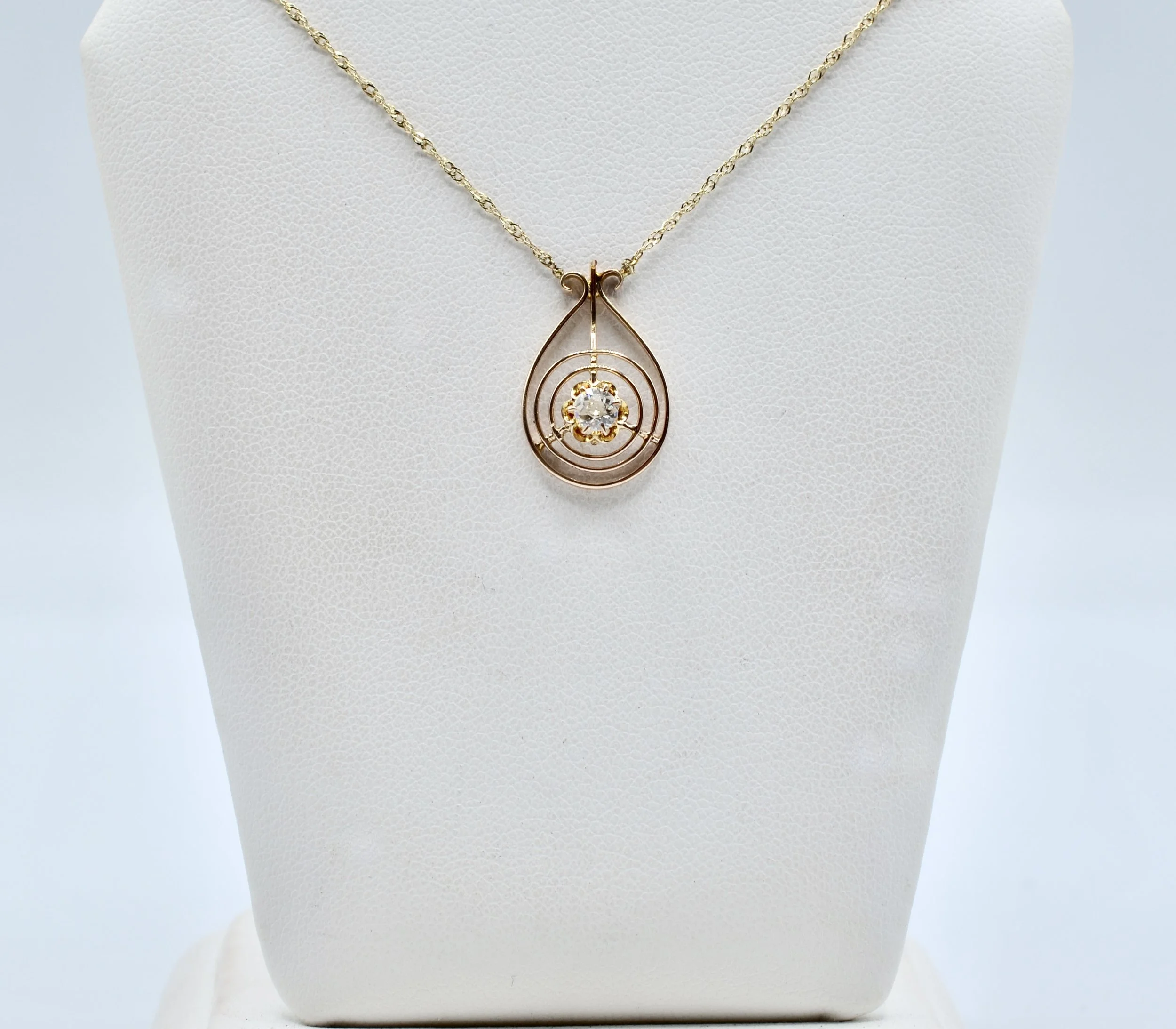 14k Vintage Gold And Solitaire Diamond Necklace. 1.4gr
