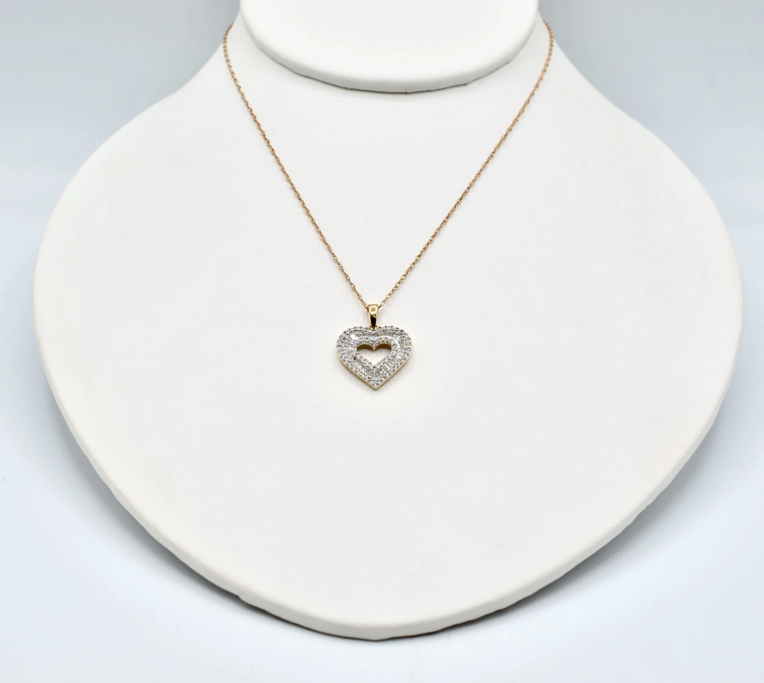 14k Two Tone Gold And Natural Diamond Heart Pendant And Chain. ~~3.3gr
