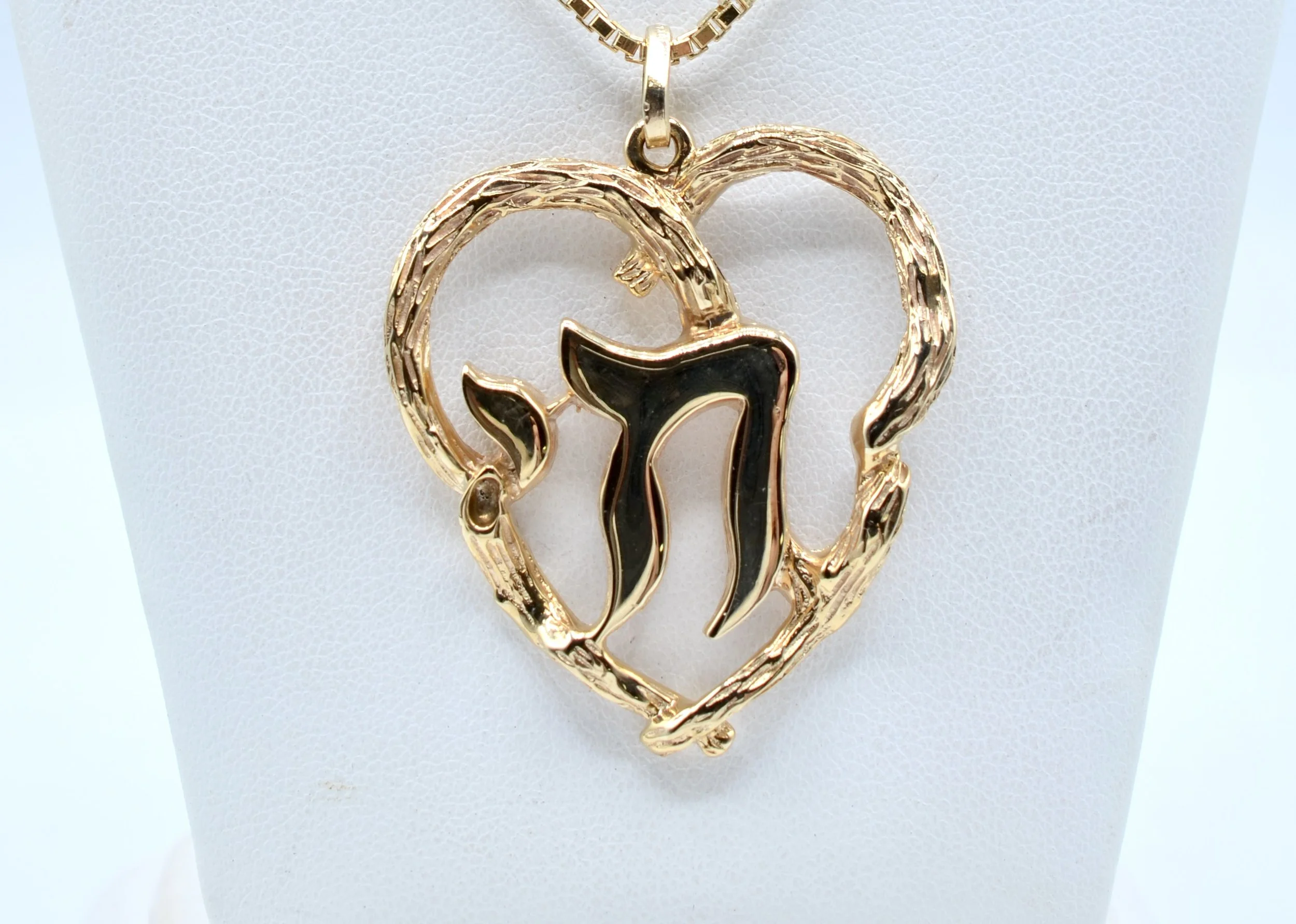 14k Vintage Gold Judaica Hebrew Chai Pendant In A Heart.~~8.2gr
