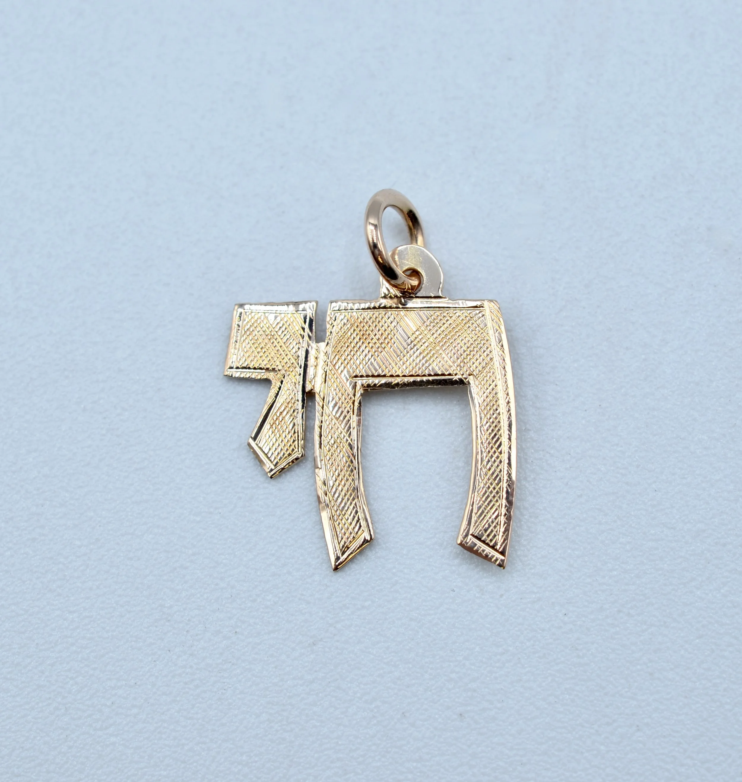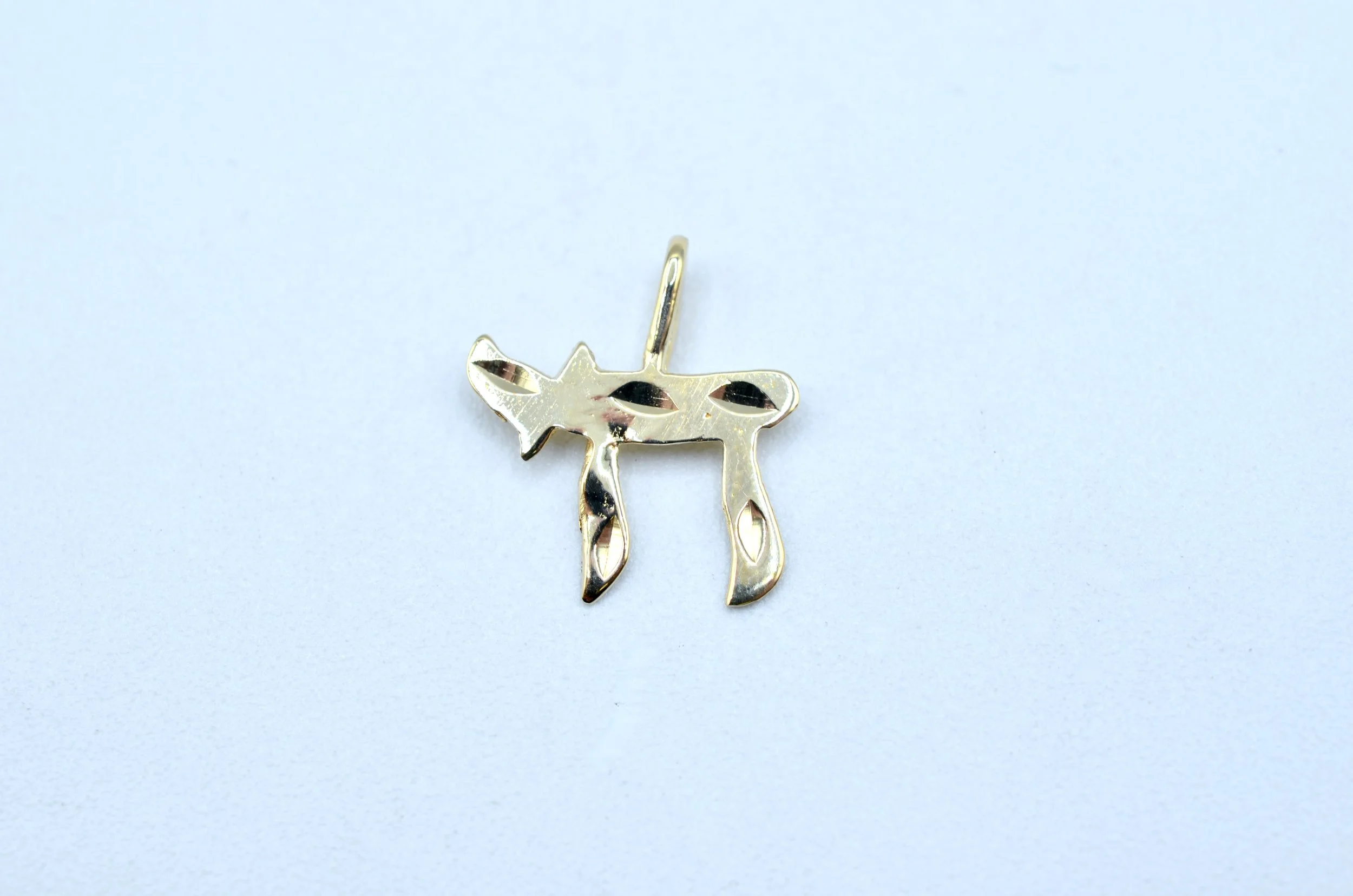 14k Gold Hebrew Chai “Life” Pendant Made in Israel Judaica.~~ 0.9g