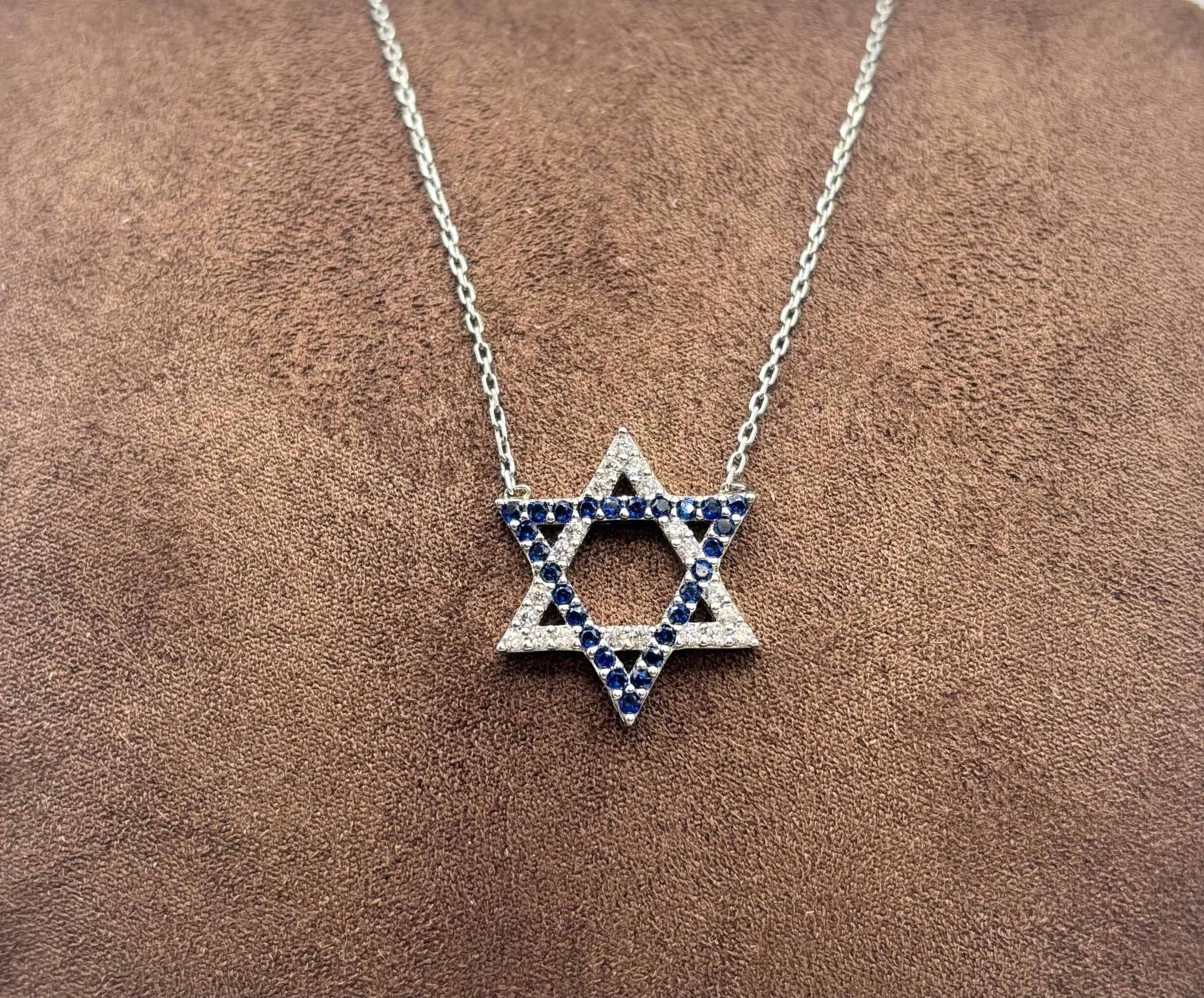 Sterling Silver 925 Blue/White CZ Star of David Necklace 16–18”