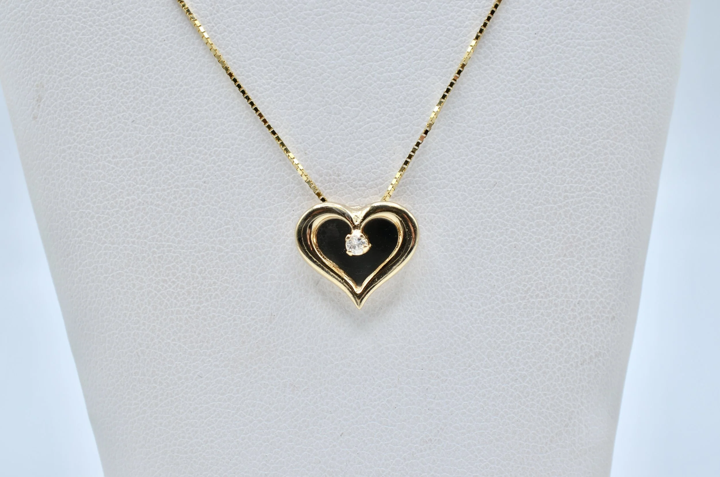 14k Vintage Gold And Single Diamond Heart Pendant And 14k Gold Rope Chain.~2.8gr