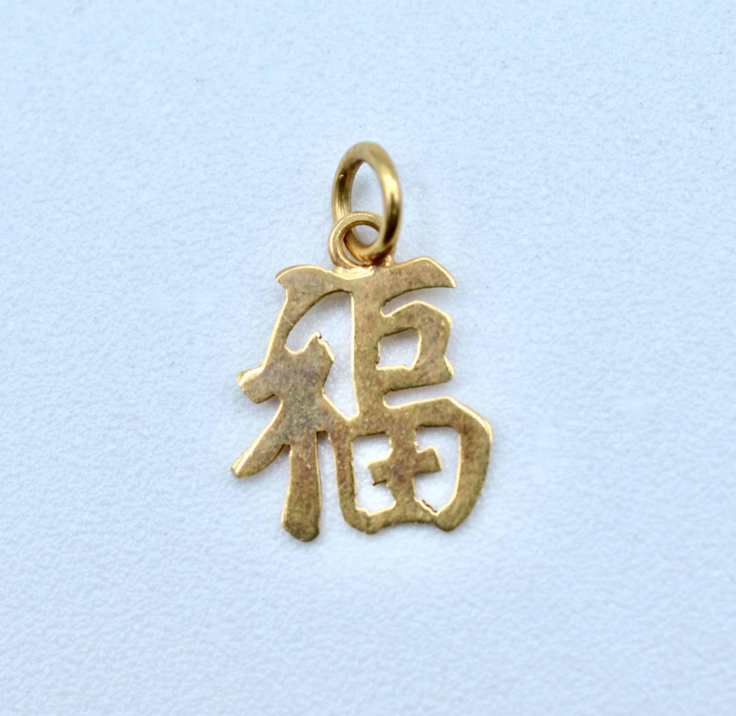 14k Yellow Gold Chinese Good Luck Symbol Charm Pendant – 0.4g
