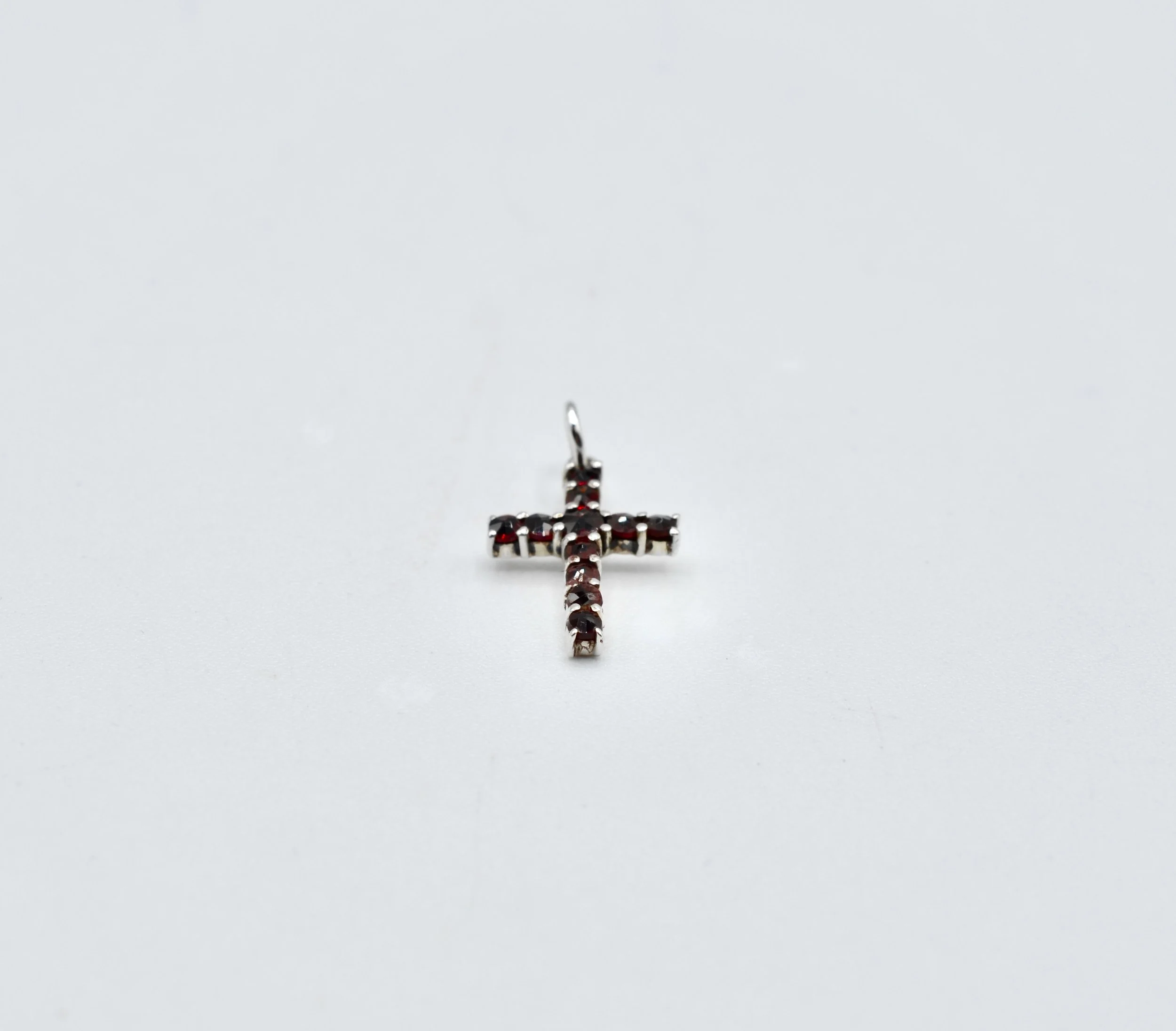 Sterling Silver And Garnet Cross Pendant/Charm.~~ 0.8gr