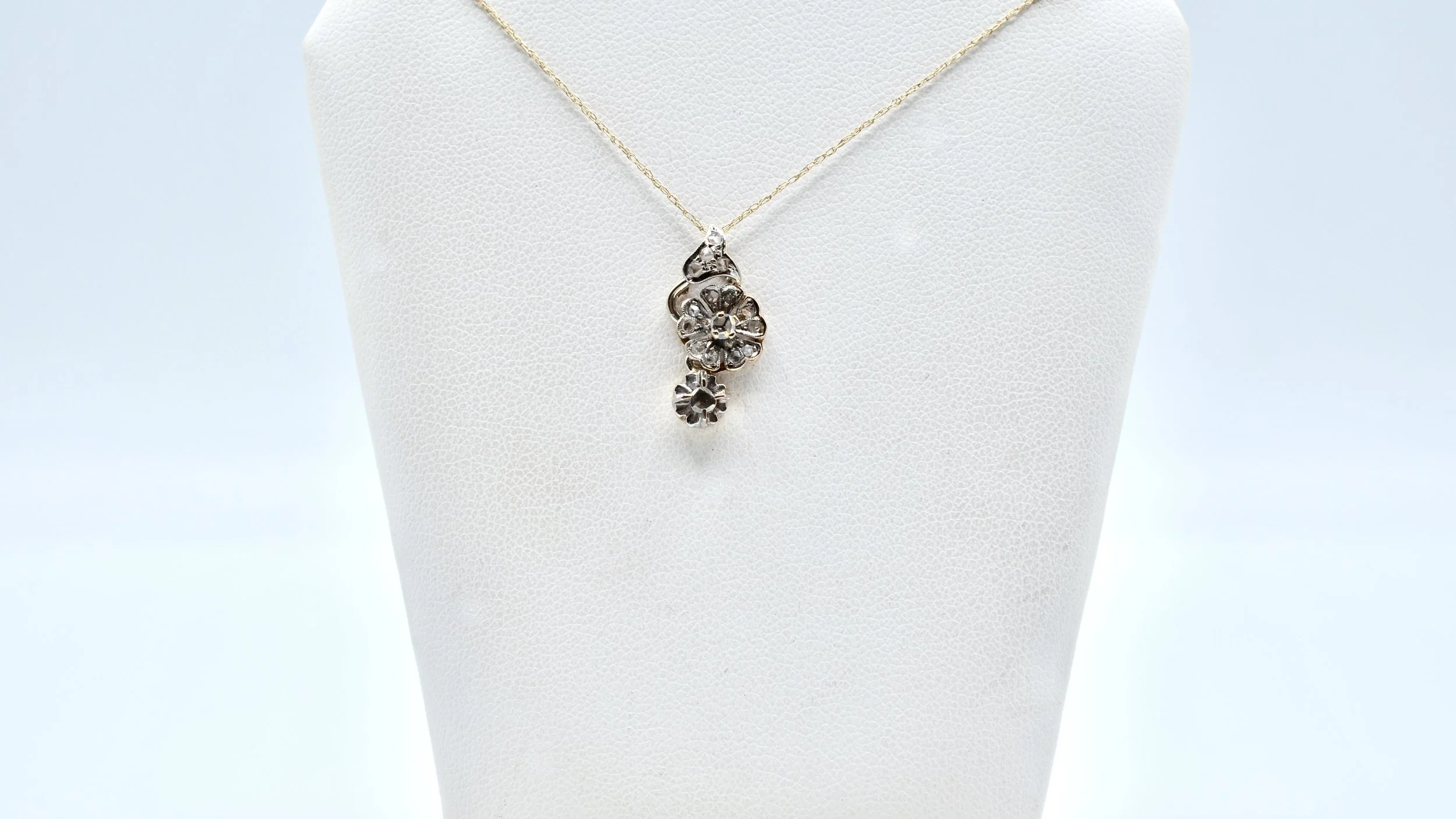 14k Antique Two Tone Gold And Rose Cut Diamond Pendant And Chain. 1.3gr