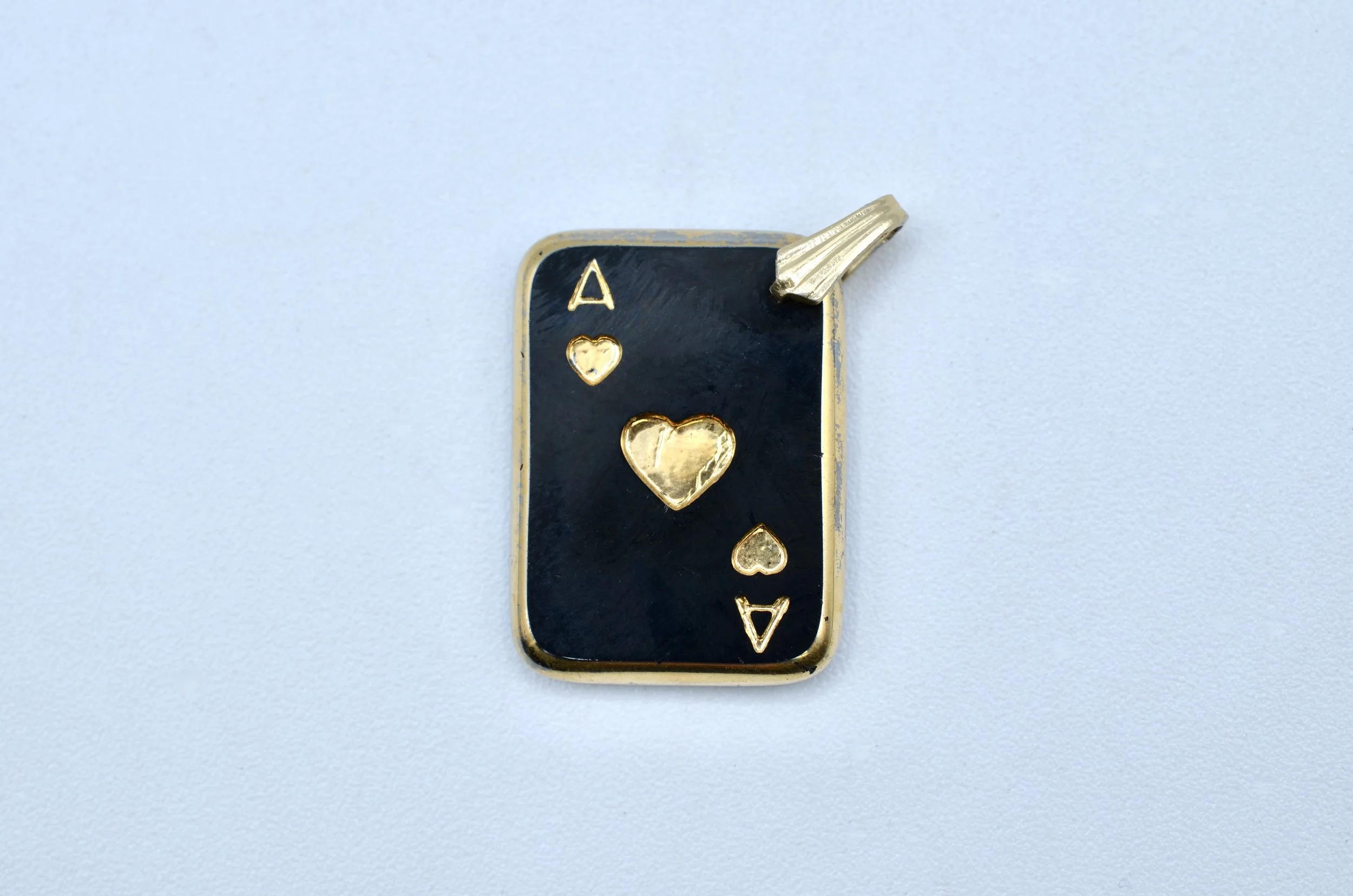 Gold-Plated And Onyx Ace Of Hearts Playing Card Pendant/Charm.