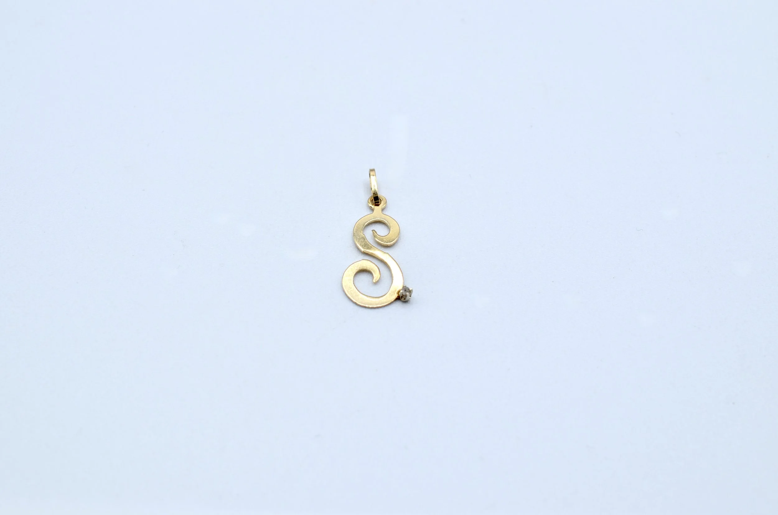 14k Vintage Gold And Diamond Initial S Charm/Pendant. 0.4gr