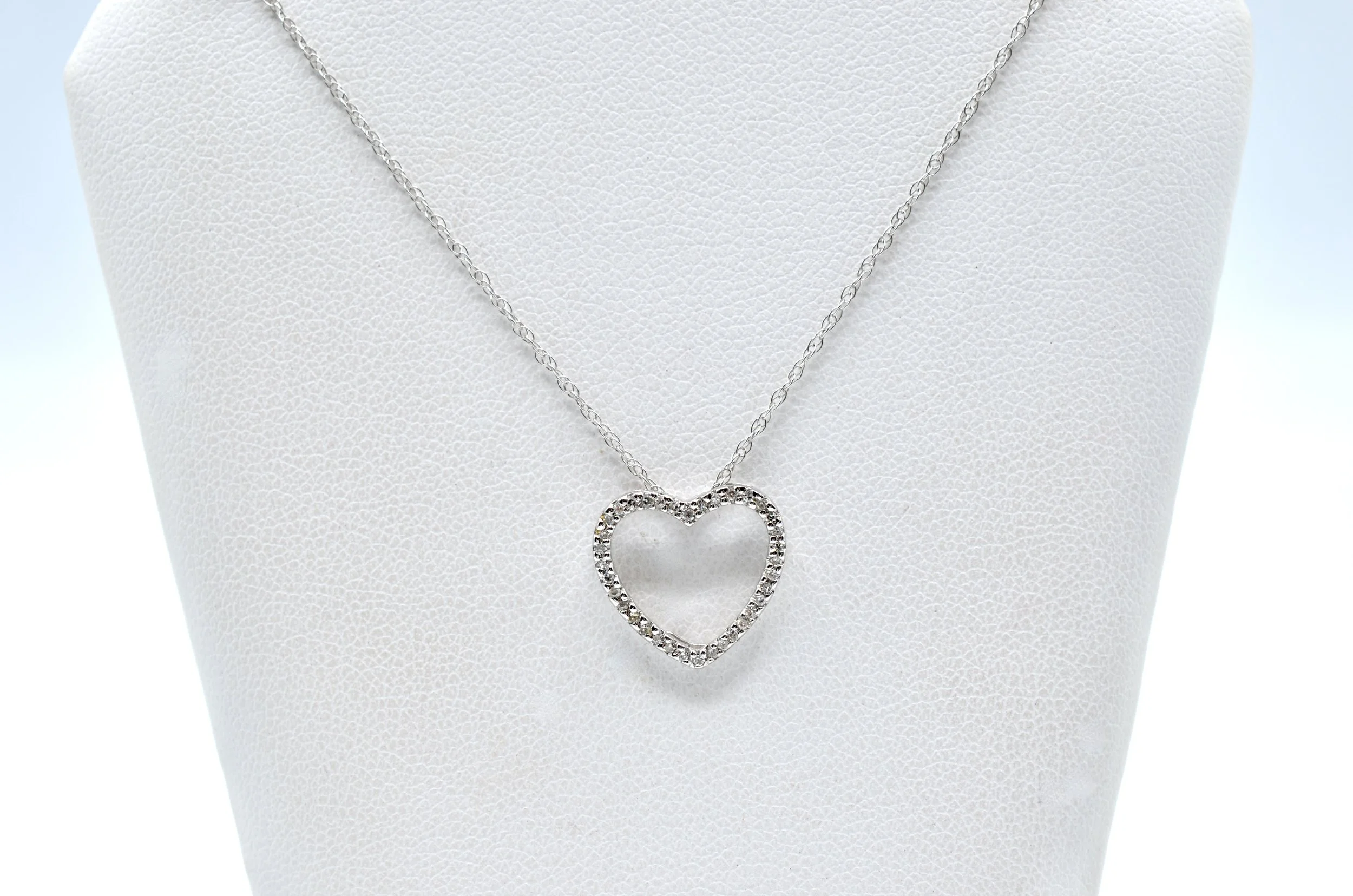 14k White Gold And Natural Diamond Heart Pendant And Chain. 1.4gr