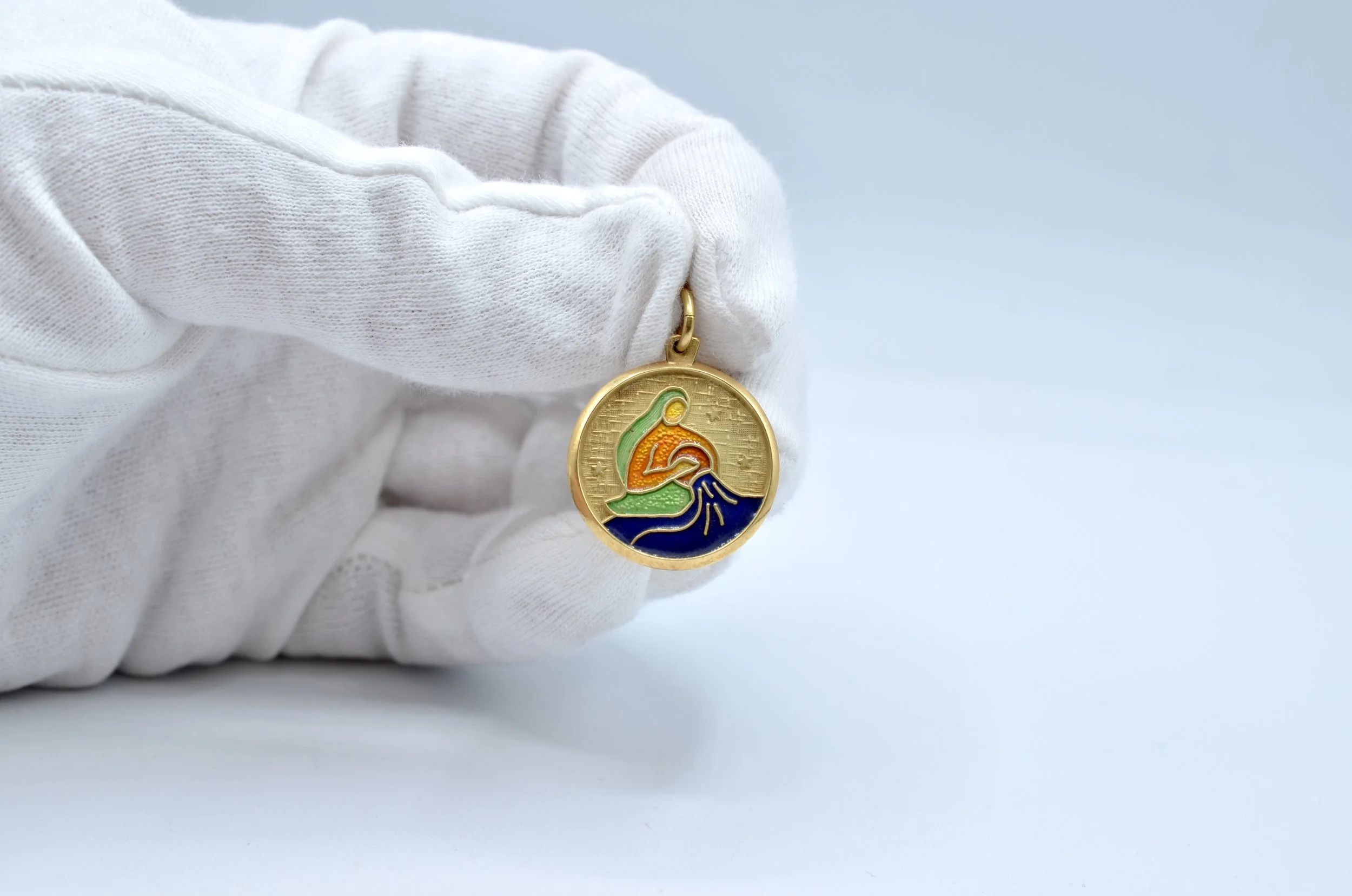 14k Gold And Enamel Aquarius Zodiac Charm/Pendant.~~ 2.8gr