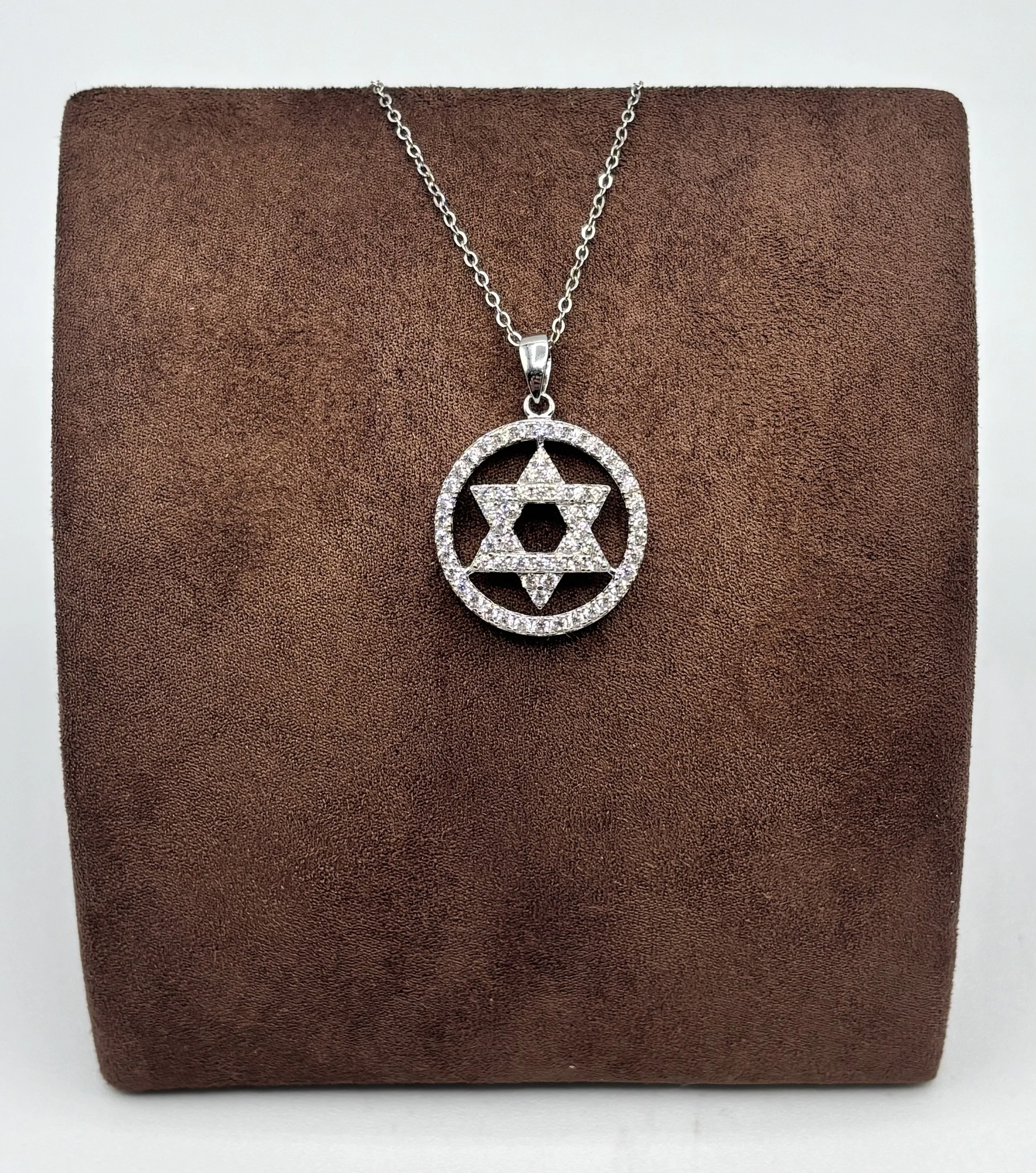 Sterling Silver 925 Star of David CZ Pendant w/ 16" Chain~~4.1gr