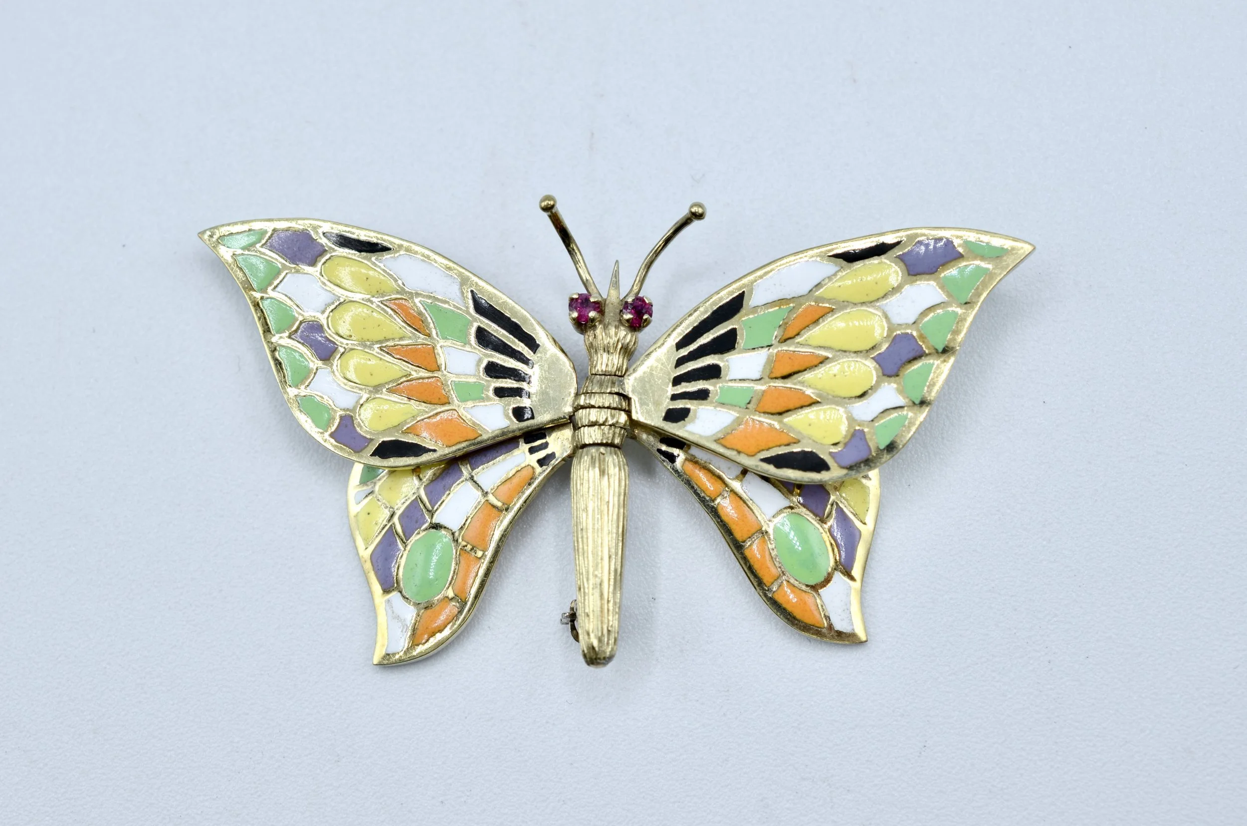 14k Vintage Gold Multicolor Enamel Butterfly Pin/Brooch – Movable Wings – 13.7g