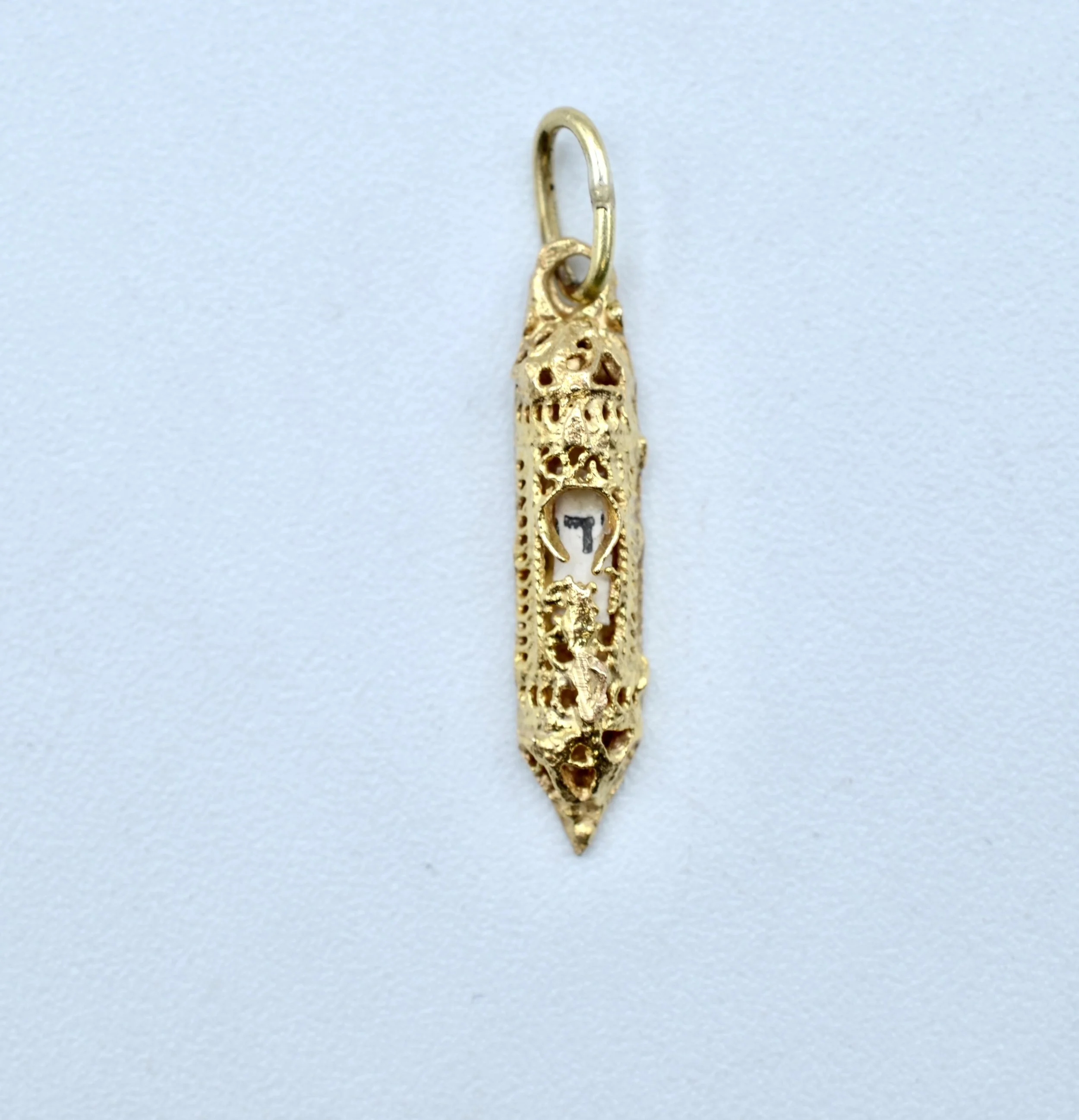 14k Gold Filigree Mezuzah Charm Pendant Pre-Owned – 0.8g –Judaica Scroll Design
