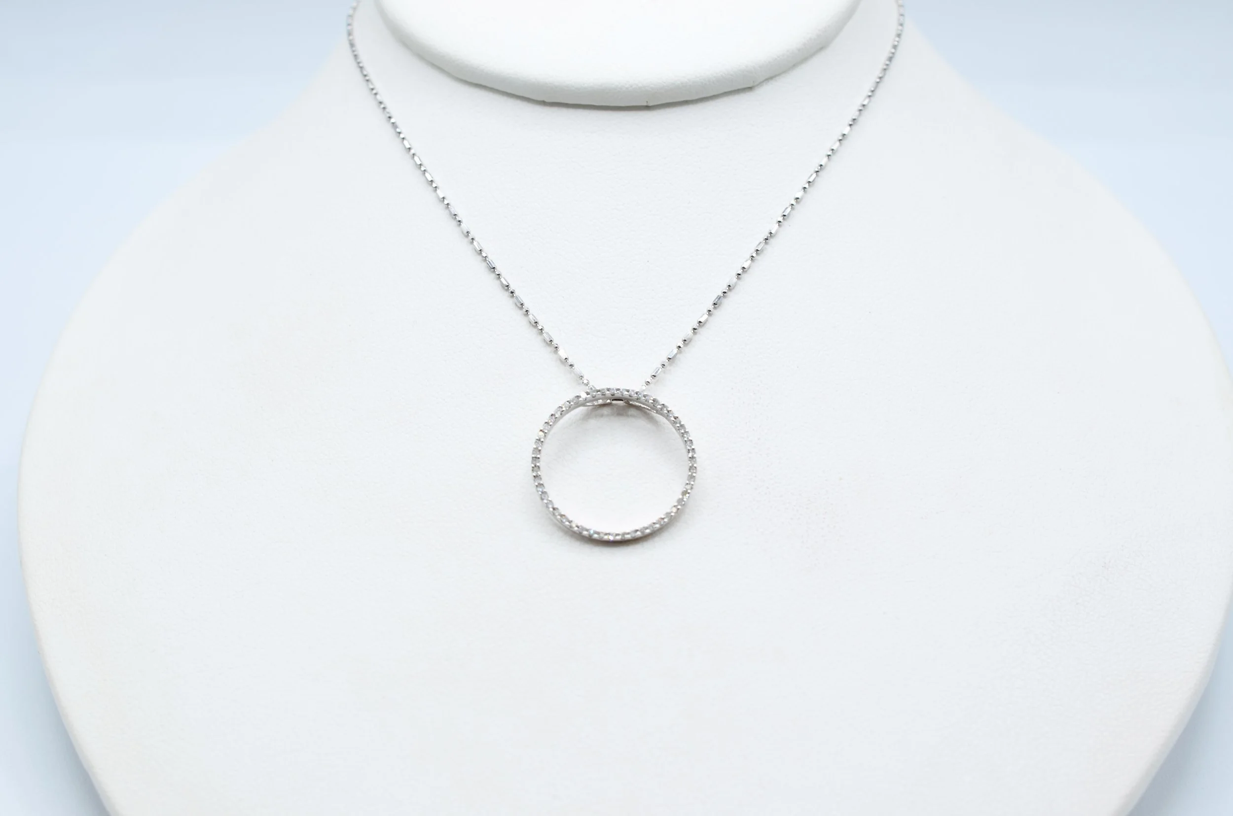 14k White Gold And Diamond Circle Of Life Pendant And Chain.~~2.9gr