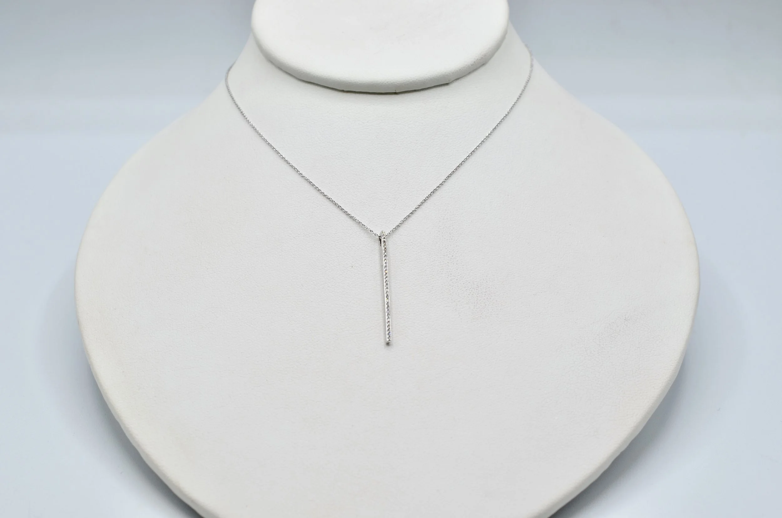 14k White Gold And Natural Diamond Bar Pendant And Chain.~~1.7gr