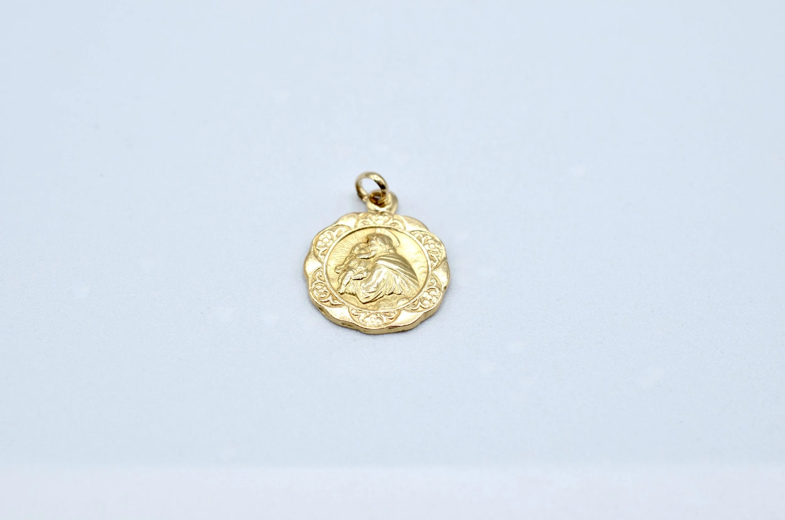 18k Vintage Gold St. Anthony & Jesus Medallion Religious Charm Pendant Italy.