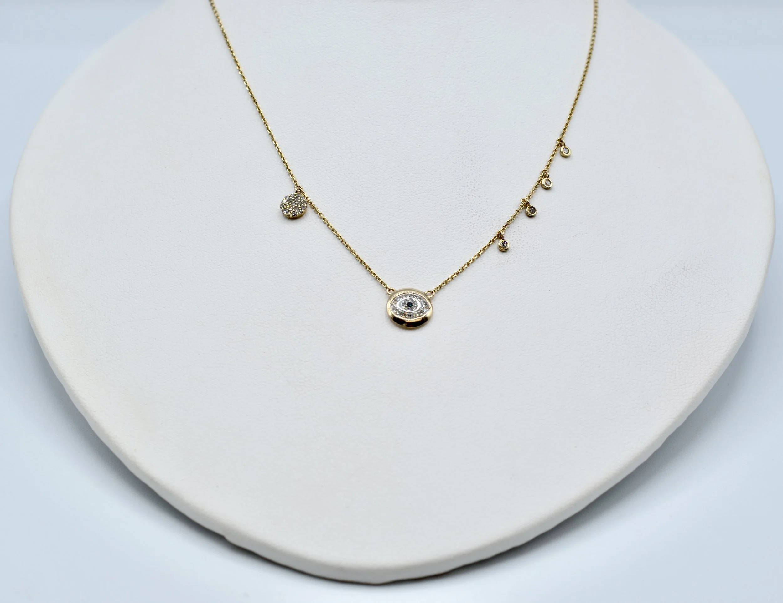 10k Gold, Blue And White Diamond Evil Eye Necklace.~~2.7gr