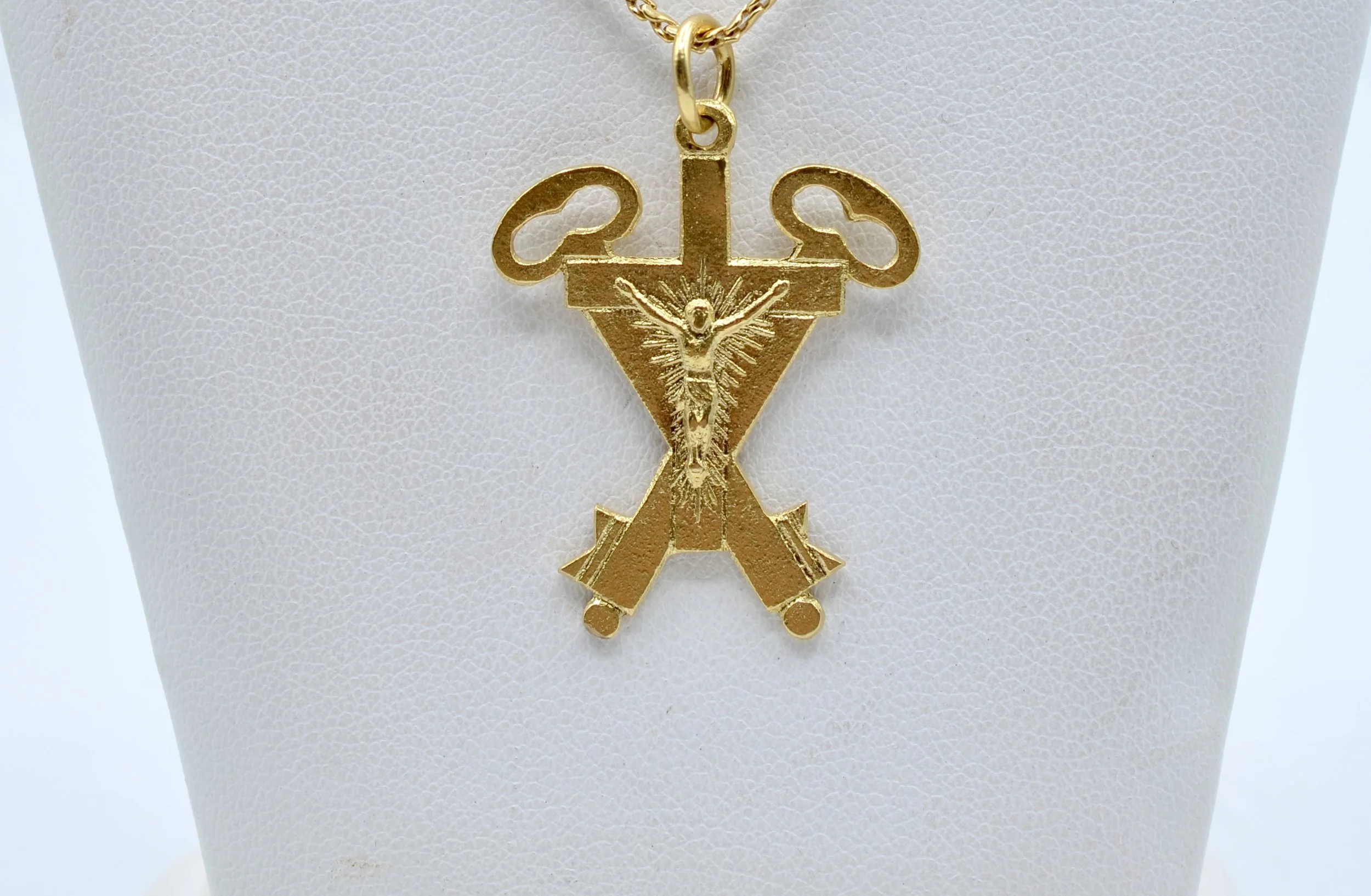 18k Vintage Gold Double Key Crucifix Pendant/Charm.~~ 3.4gr