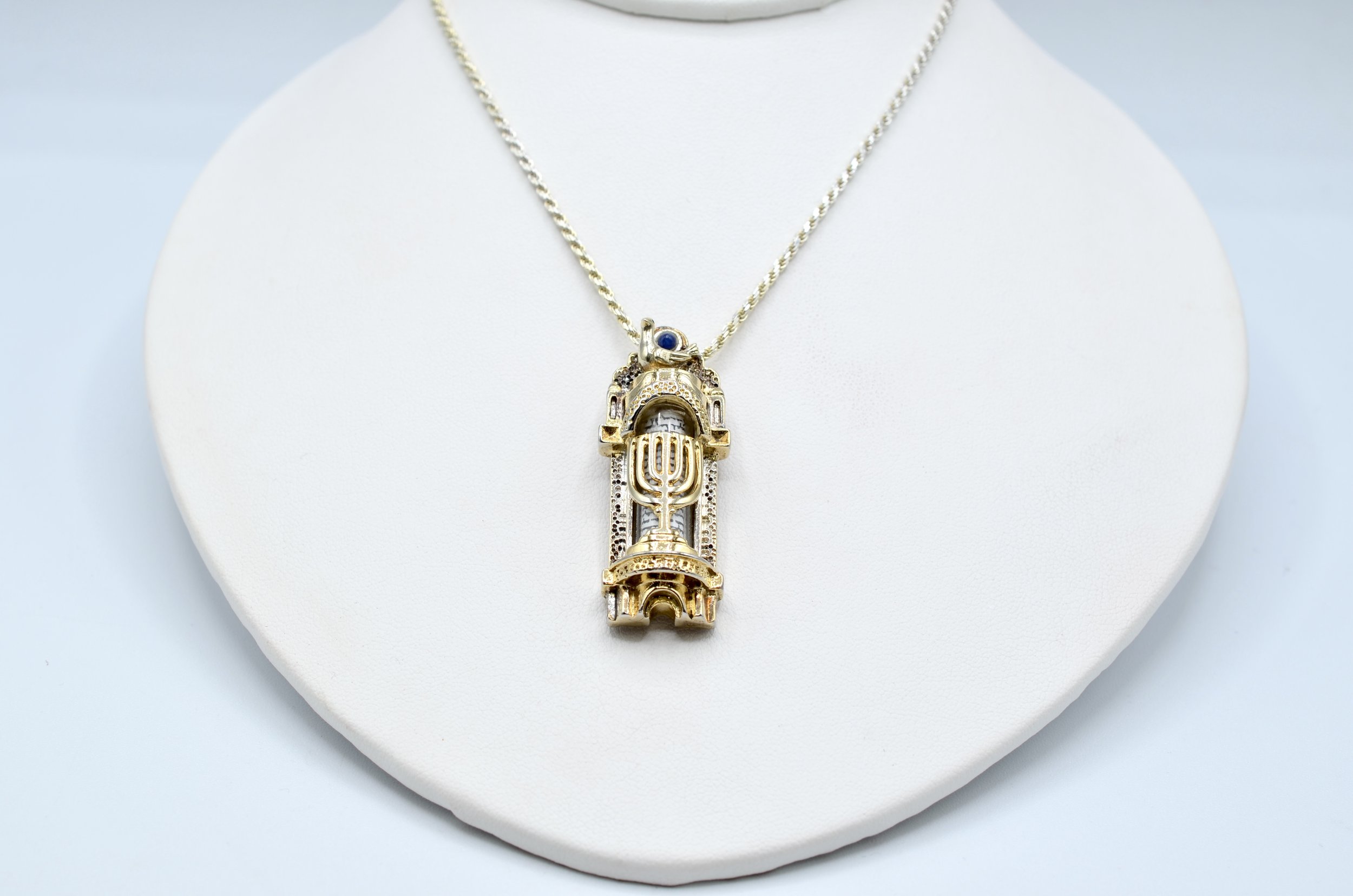 Frank Meisler Sterling Silver Gold Plated Menorah Mezuza Pendant And Rope Chain.