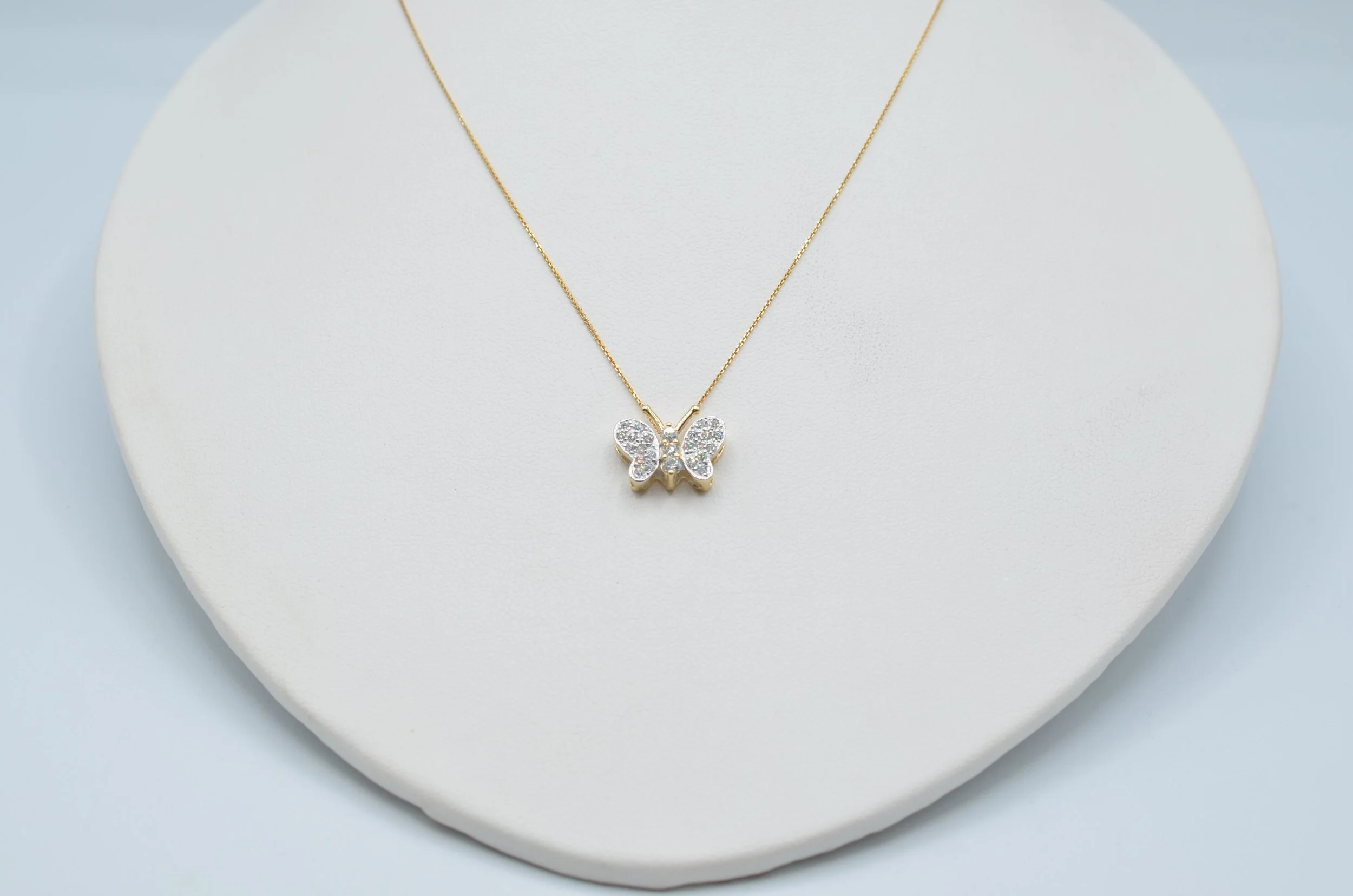 14k Gold And Cubic Zirconia Butterfly Pendant.~~2.8gr