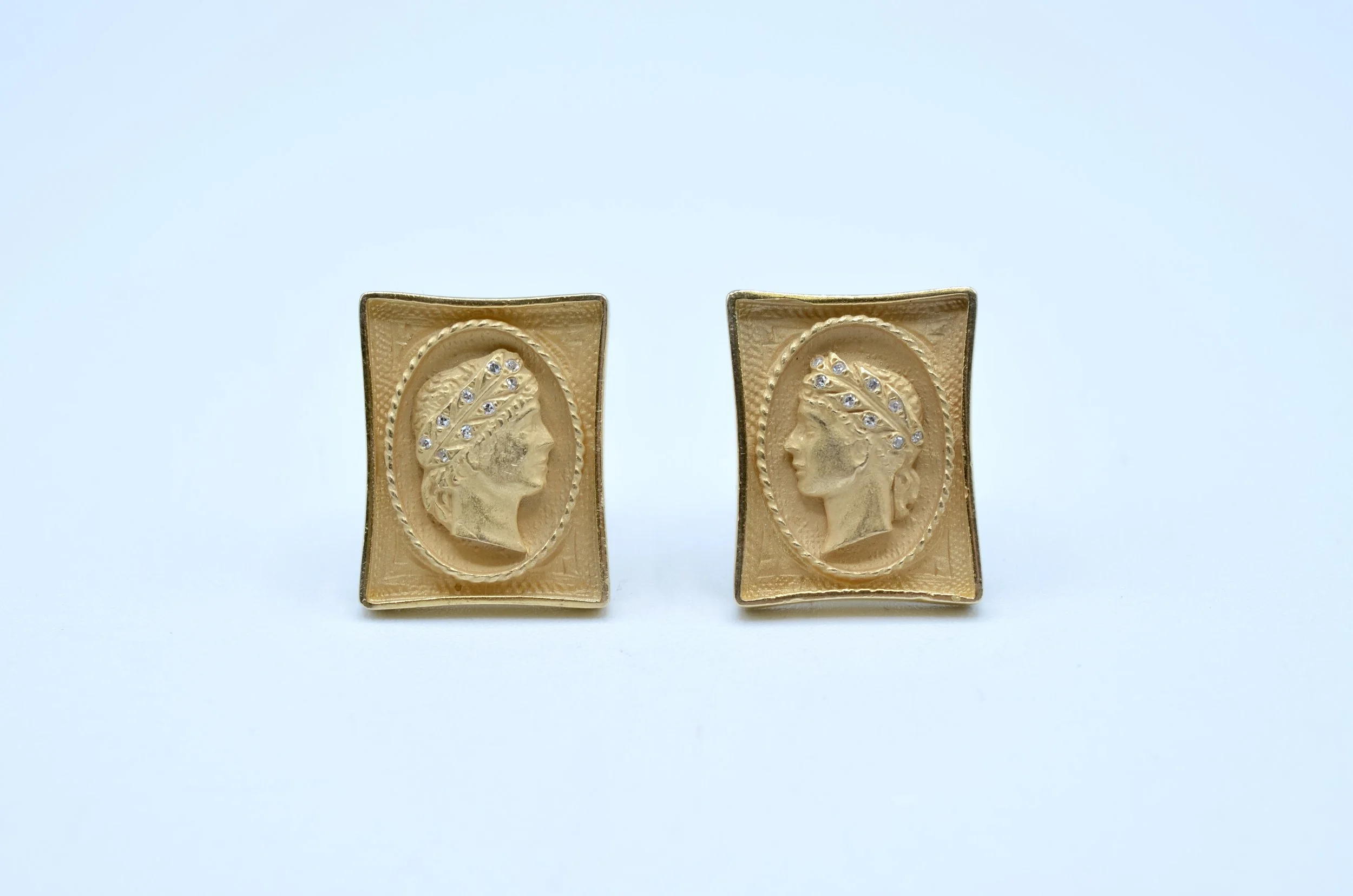 14k Vintage Gold Cameo Stud Earrings. 1.4gr