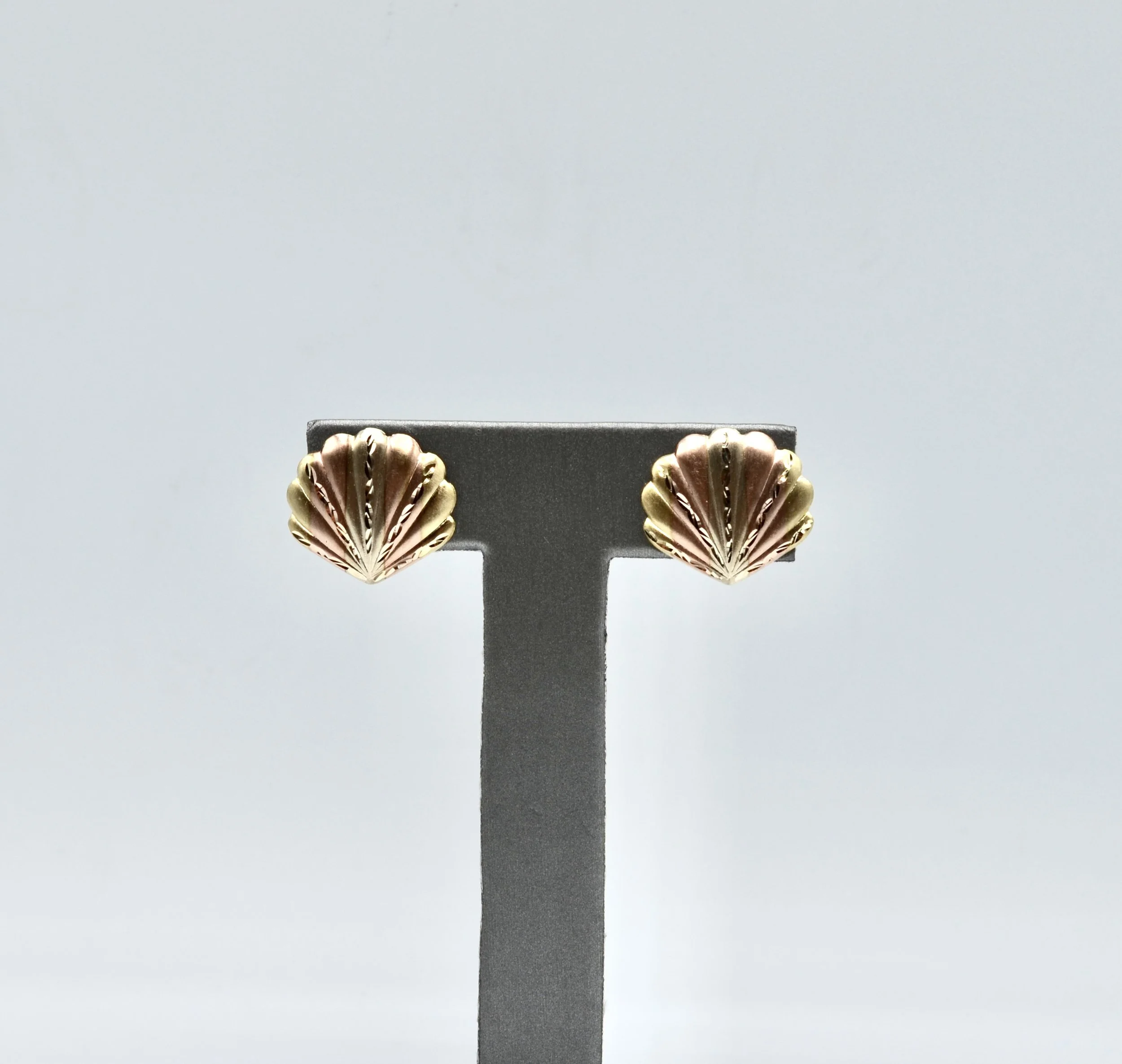 14k Vintage Rose And Yellow Gold Shell Earrings. 2.0gr