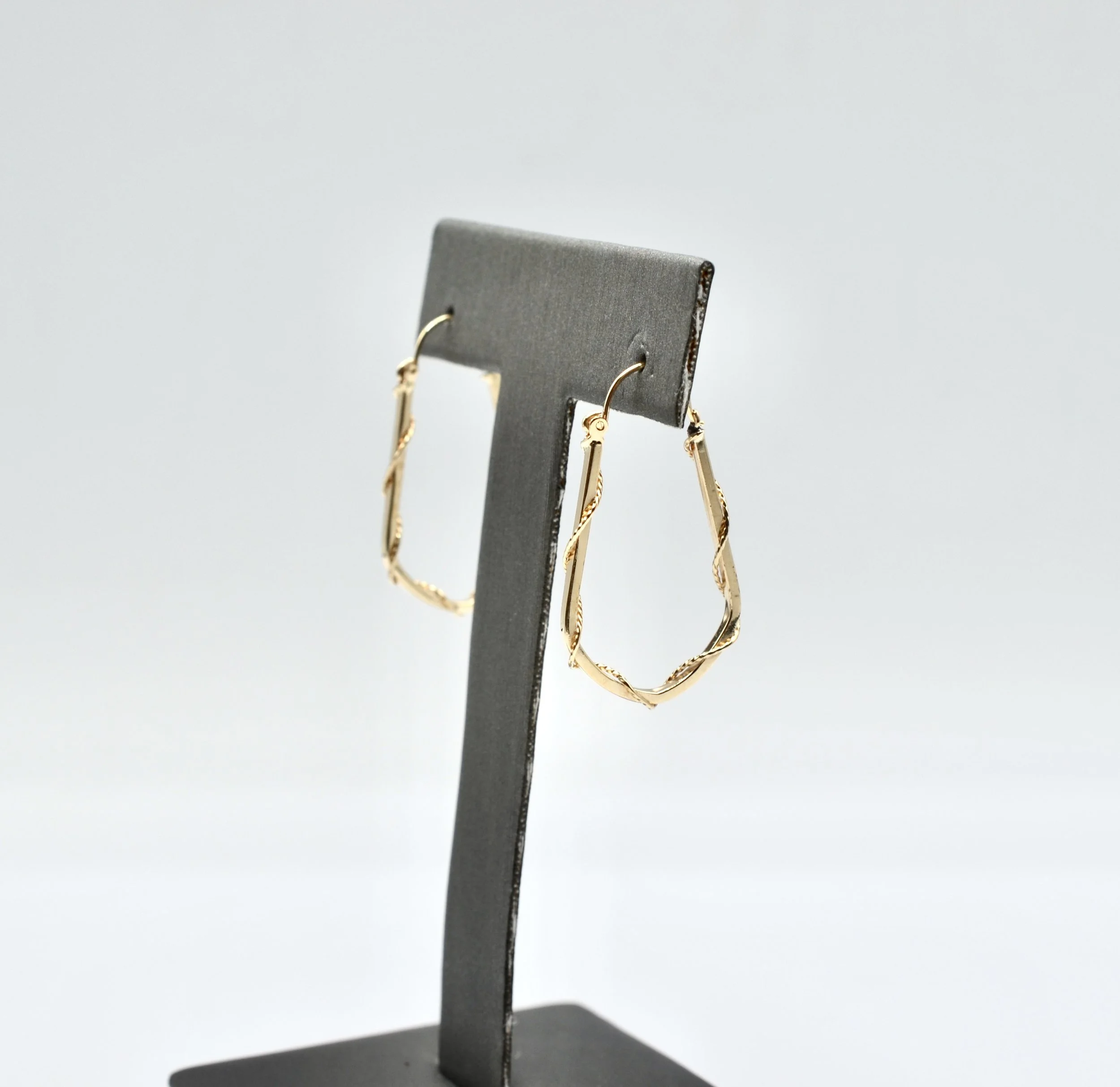 14k Vintage Gold Twisted Rectangular Hoop Earrings.~~ 1.7gr