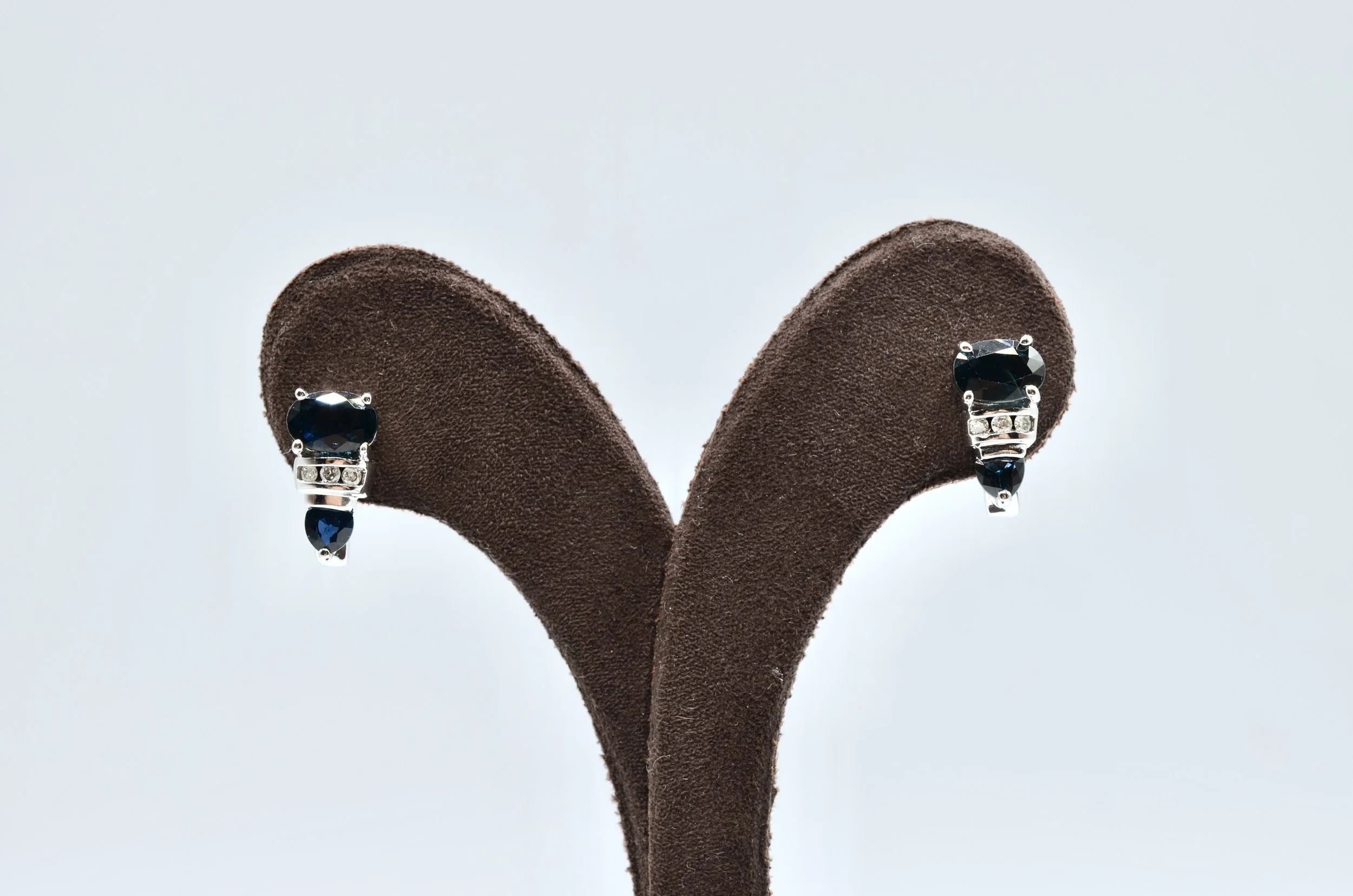 14k White Gold, Natural Diamond And Sapphire Earrings.~~2.6gr