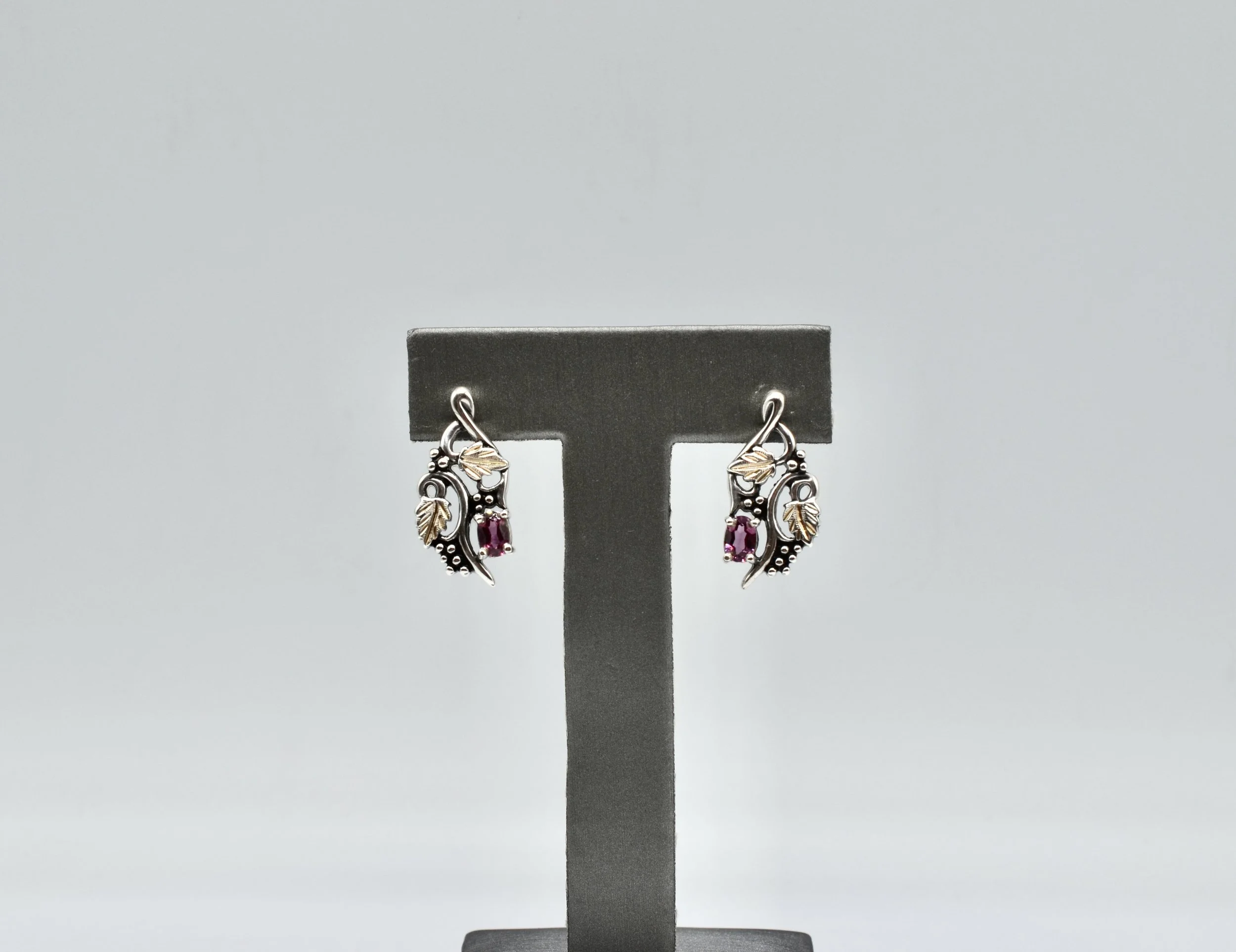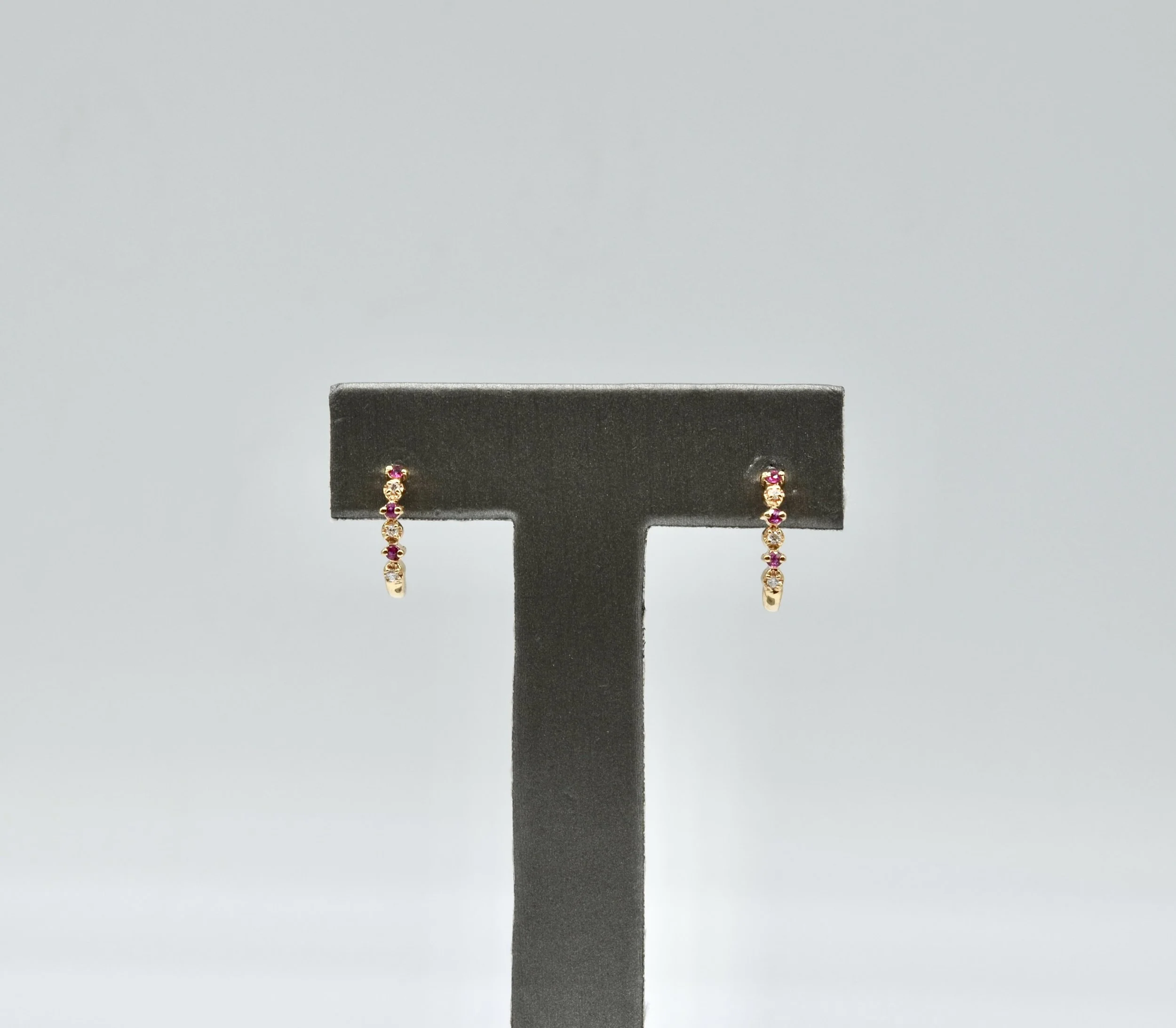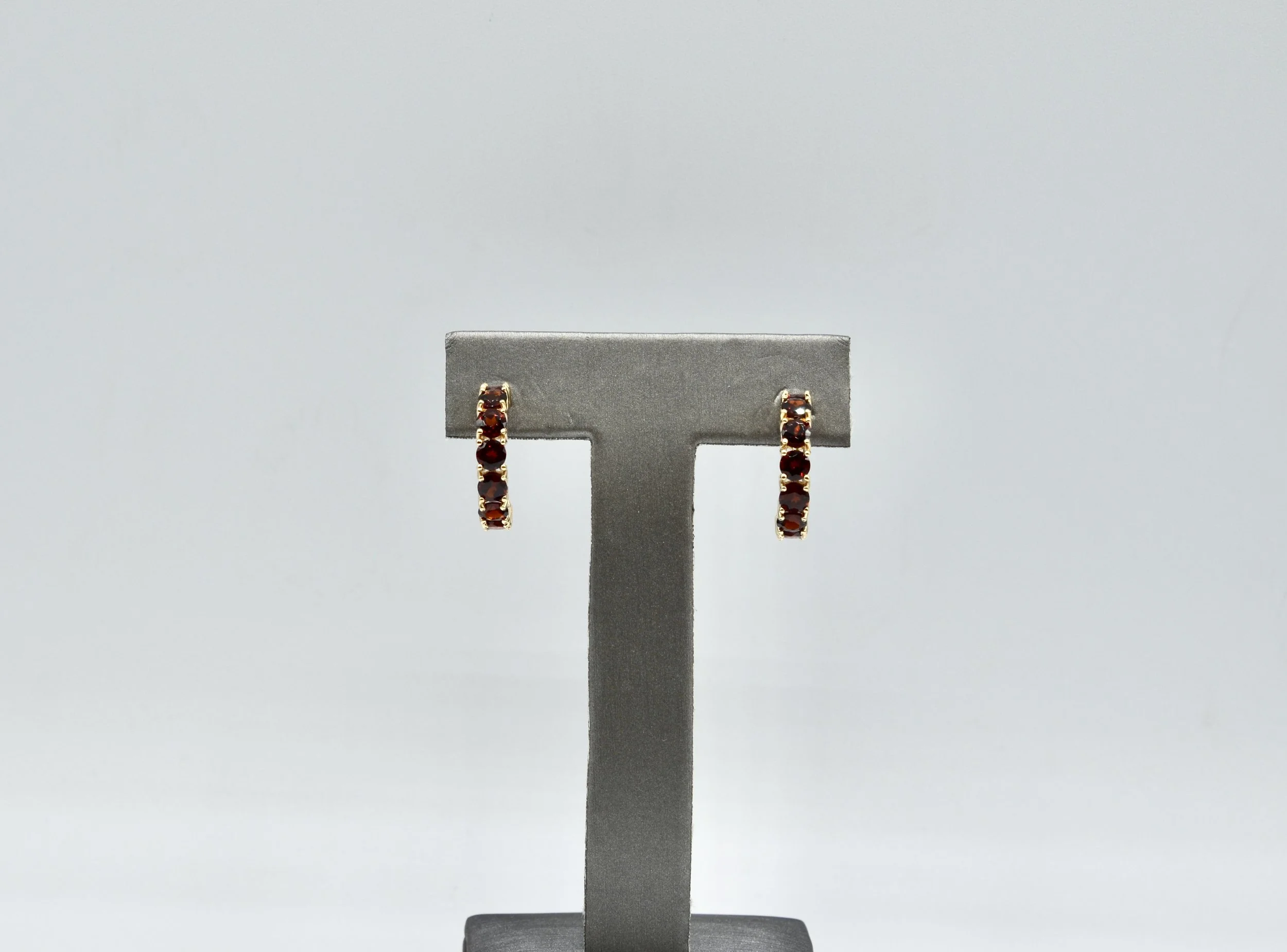 14k Vintage Gold And Garnet Half Hoop Earrings. 3.4gr
