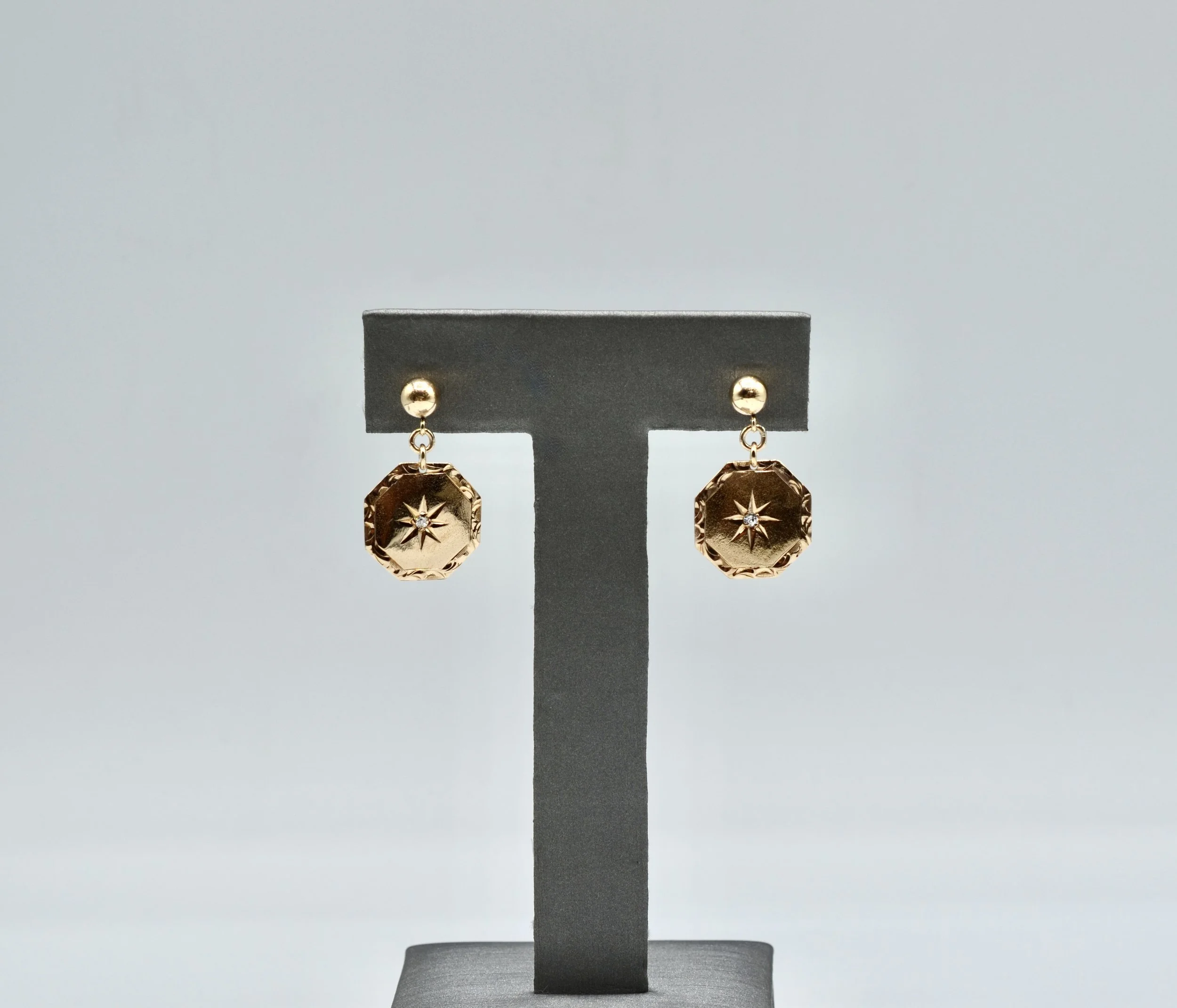 14k Vintage Diamond Cut Dangle/Drop Earrings.~~ 0.7gr