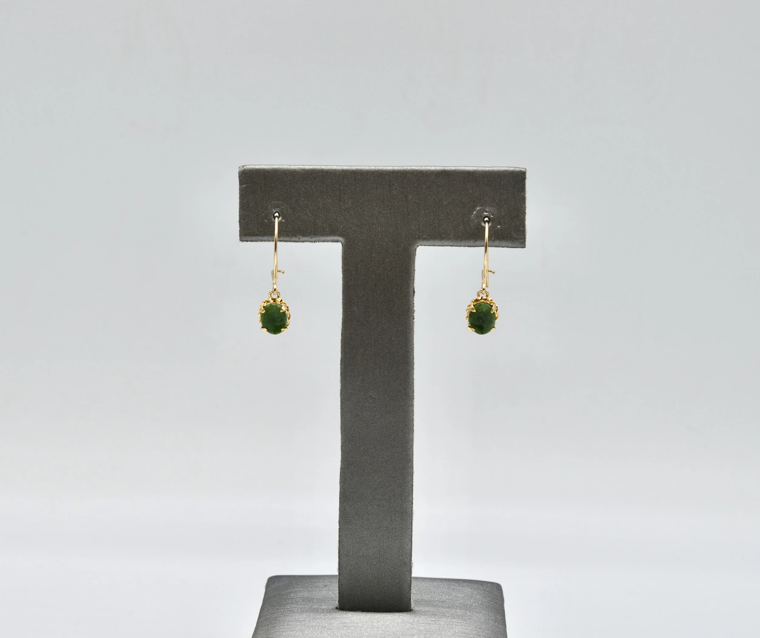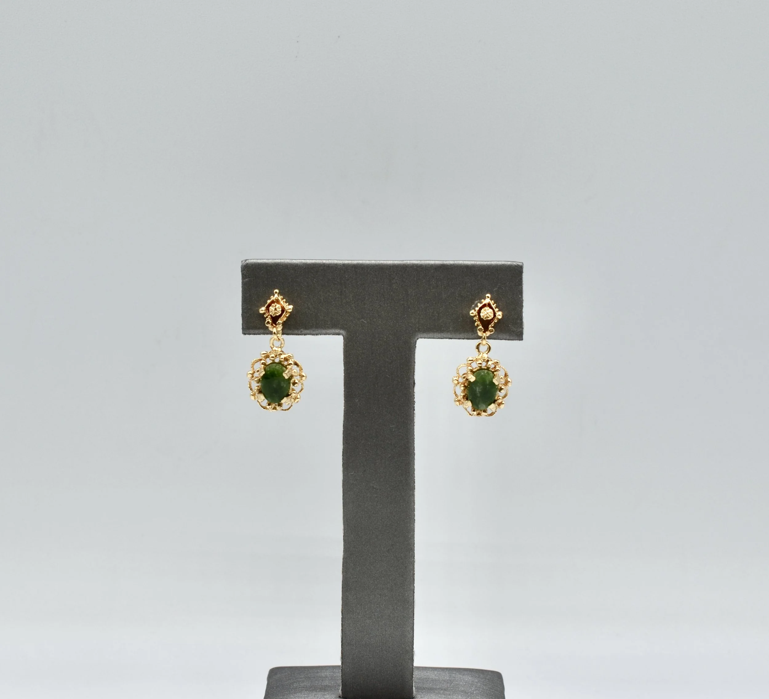 14k Vintage Gold And Jade Dangle/Drop Earrings.~~ 0.9gr