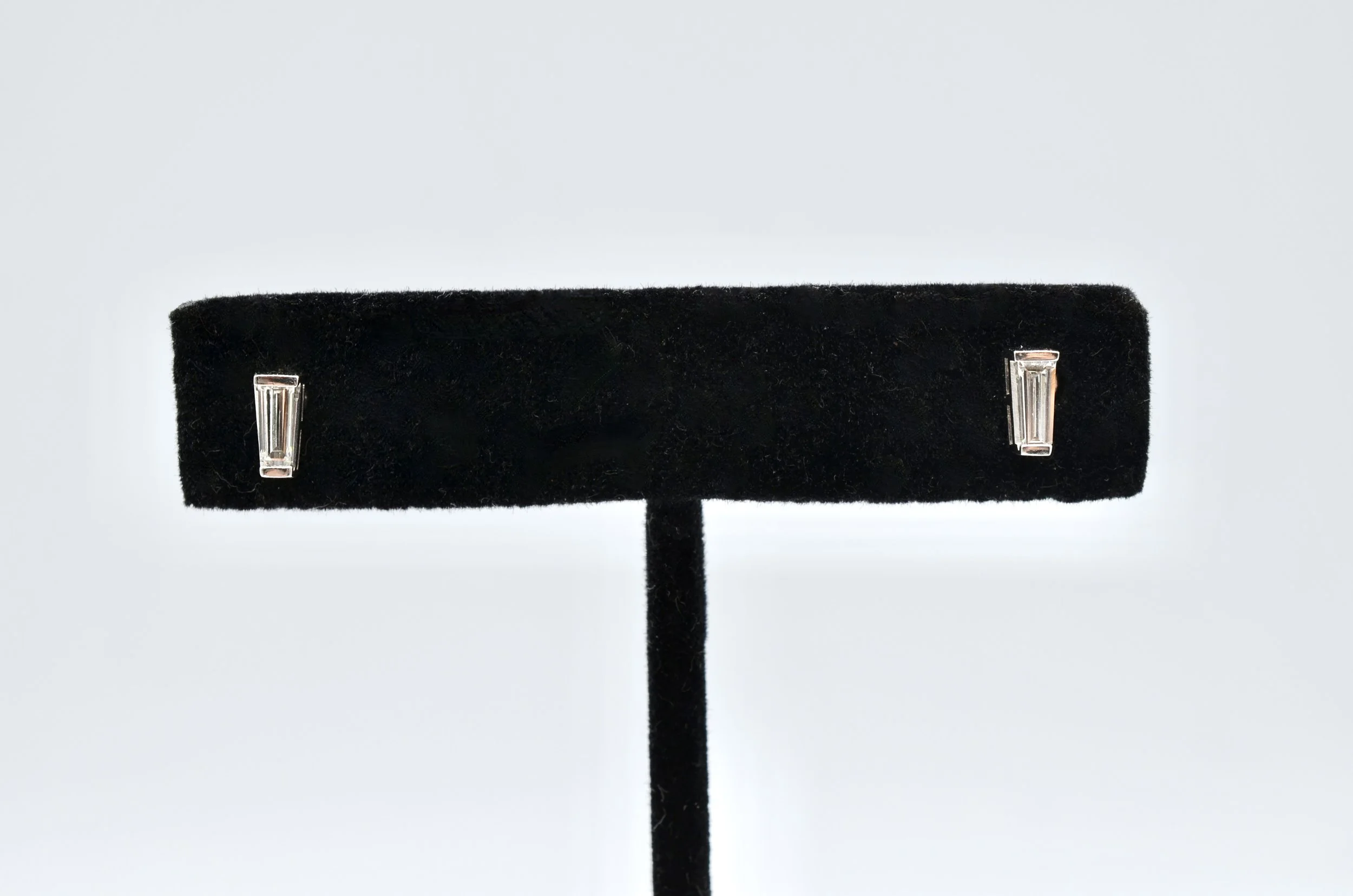14k White Gold And Natural Baguette Cut Diamond Stud Earrings.~~1.4gr