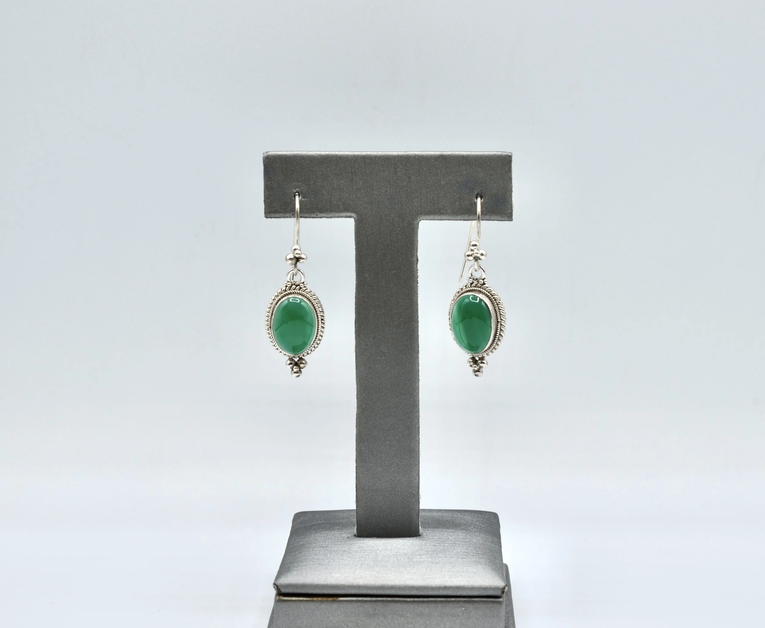 7 Gm 925 Sterling Silver Natural Green Onyx Cab Gemstone Earring Size 1.75"