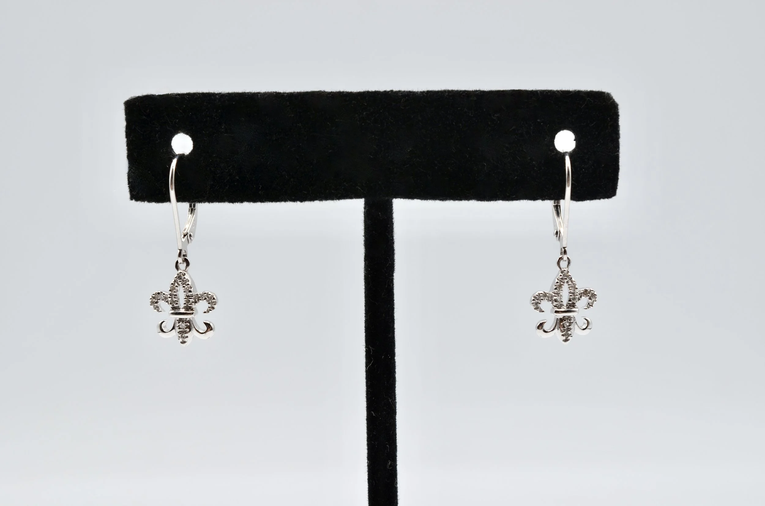 14k White Gold And Natural Diamond Fleur de Lis dangle earrings.~~ 1.7gr