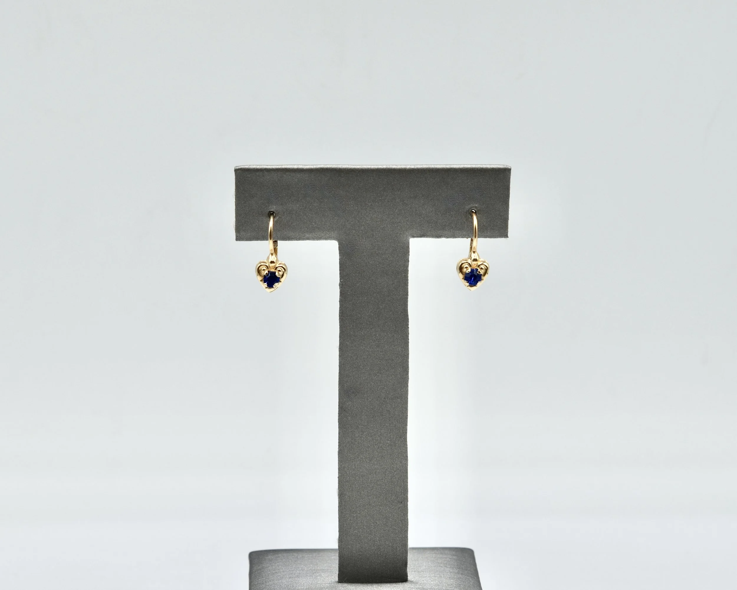 14k Vintage Gold And September Birthstone Heart Shape Leverback Earrings.