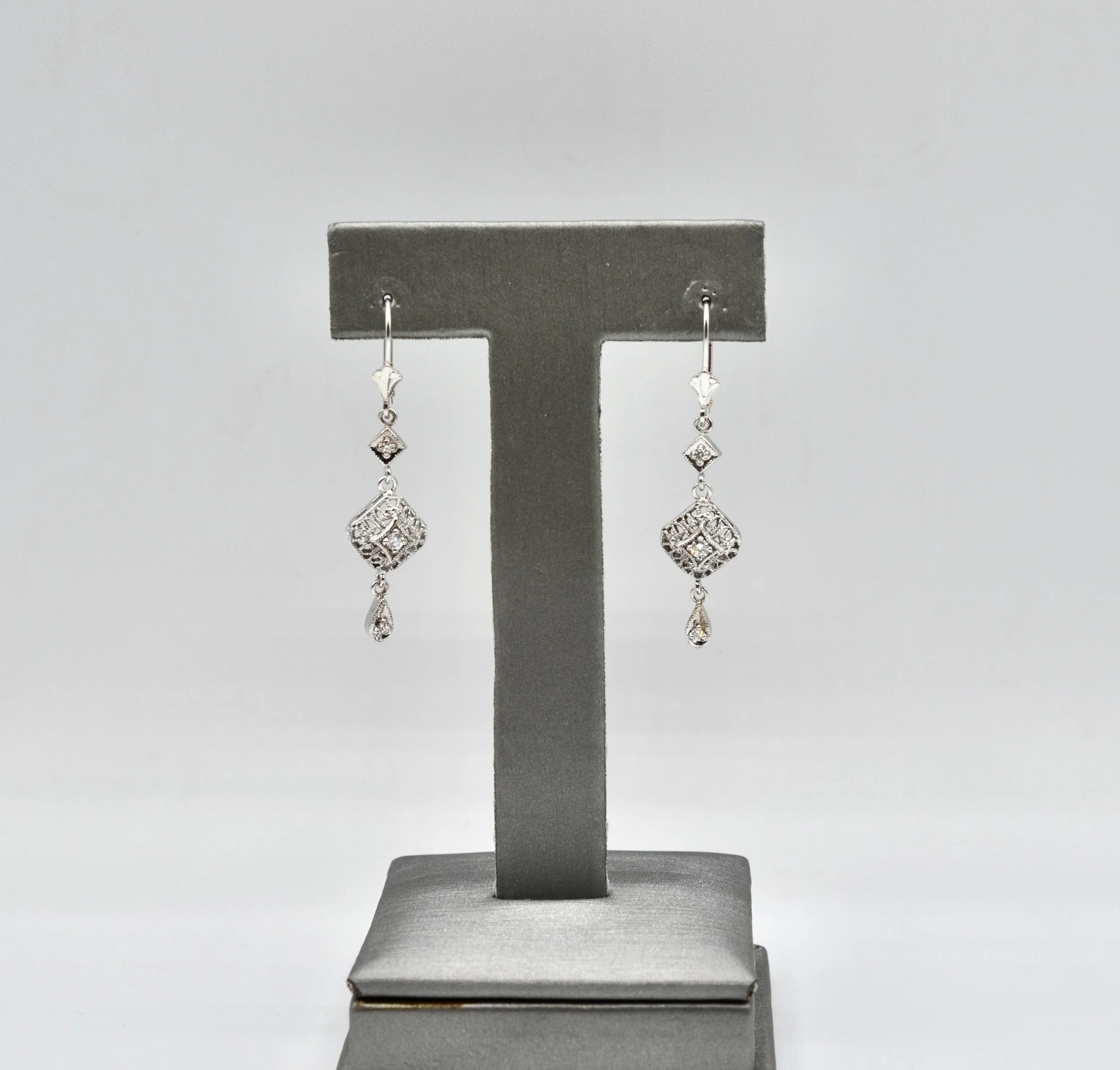 14k Vintage White Gold And Natural Diamond Feligree Dangle Earrings.~~ 3.8gr